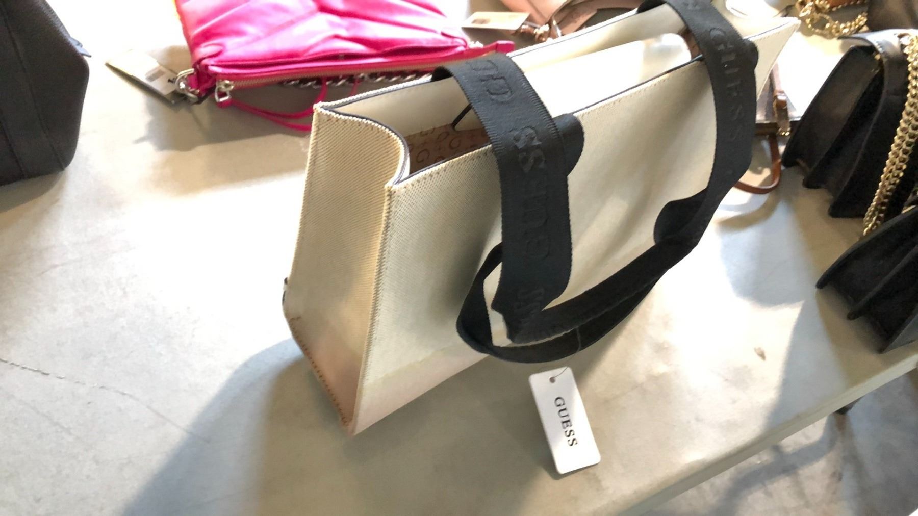 GUESS LOS ANGELES BEIGE/BLACK TOTE BAG STAINED AT BACK