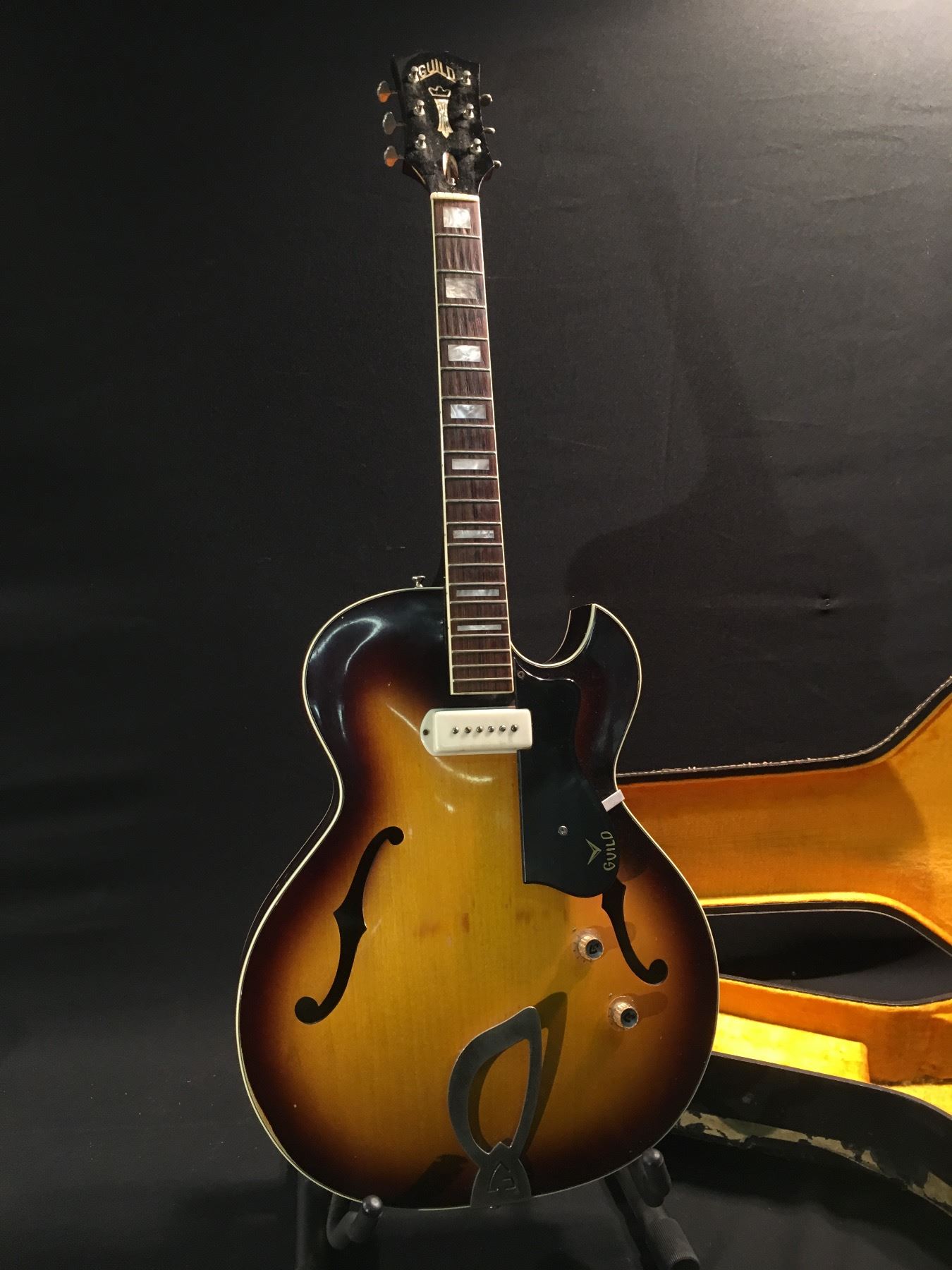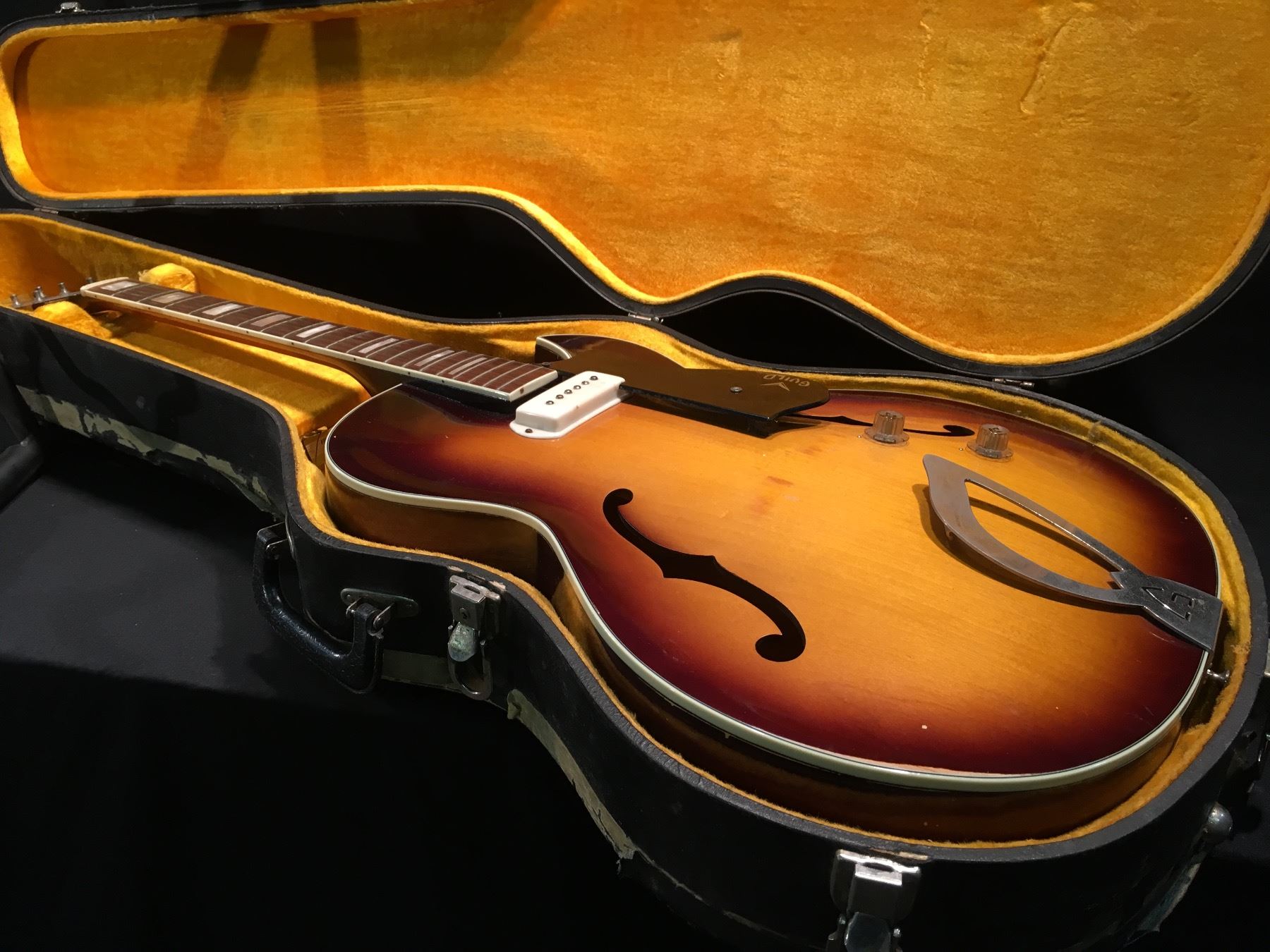GUILD STARFIRE CE-100 HOLLOW BODY ELECTRIC GUITAR, SERIAL NUMBER 19476, COMES WITH HARD SHELL CASE, MADE IN 1963 IN HOBOKEN, NEW JERSEY