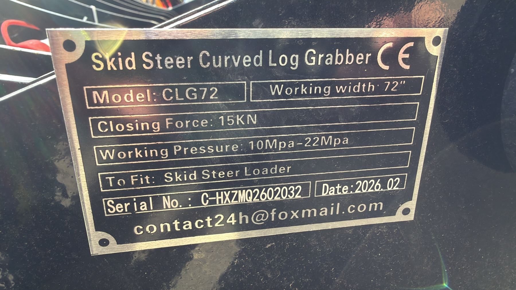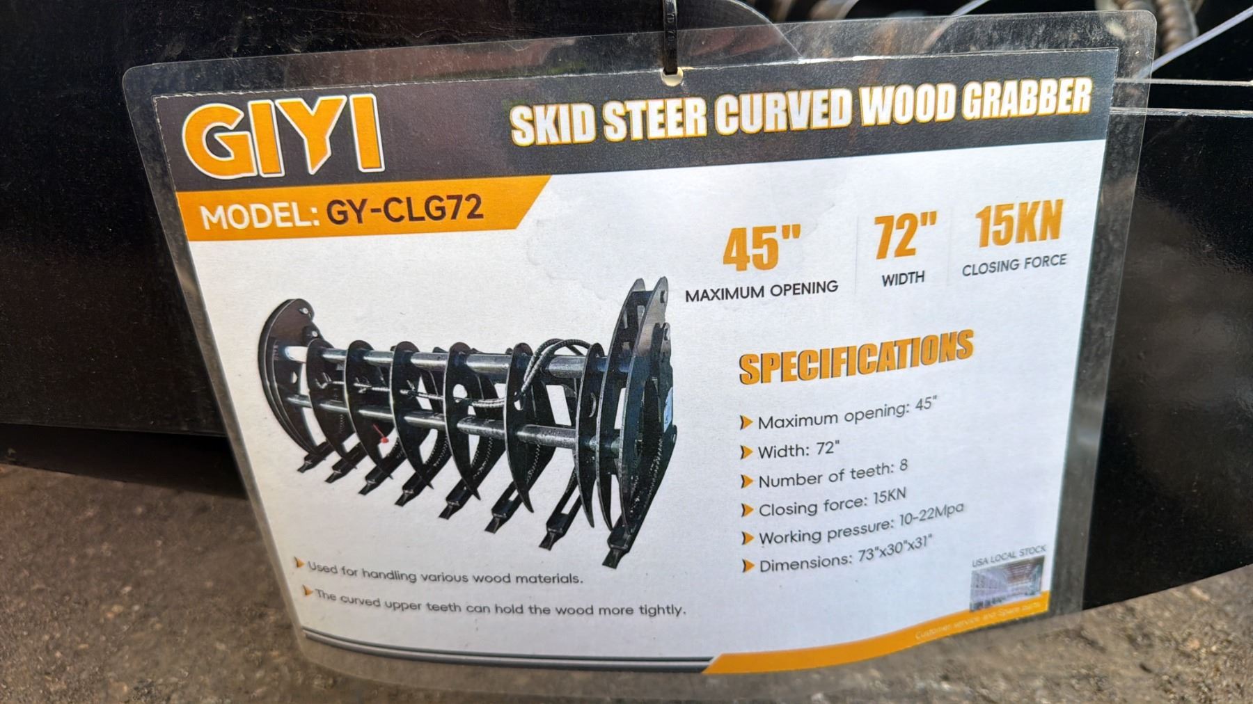 GY-CLG72, 72" HYDRAULIC SKID STEER CURVED LOG GRAPPLE ATTACHMENT