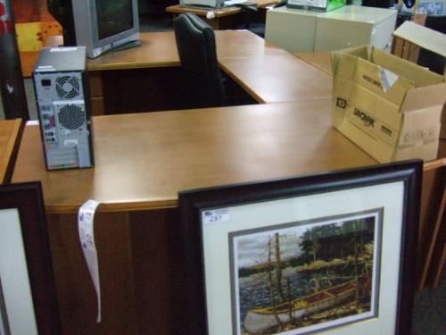 Golden Oak U-shape Bow Front Double Pedestal Executive Desk