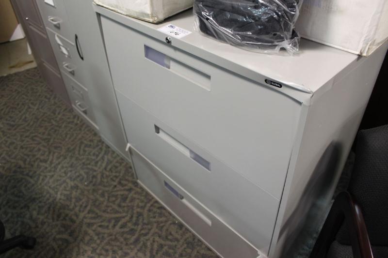 Grey Dented Front 3 Drawer Lateral File Cabinet