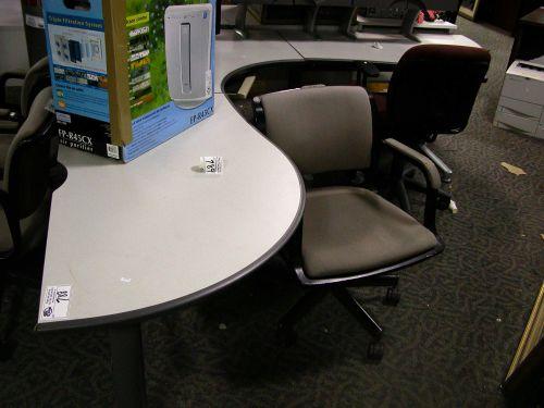 Grey Haworth L-shape Fully Adjustable Workstation With Overhead