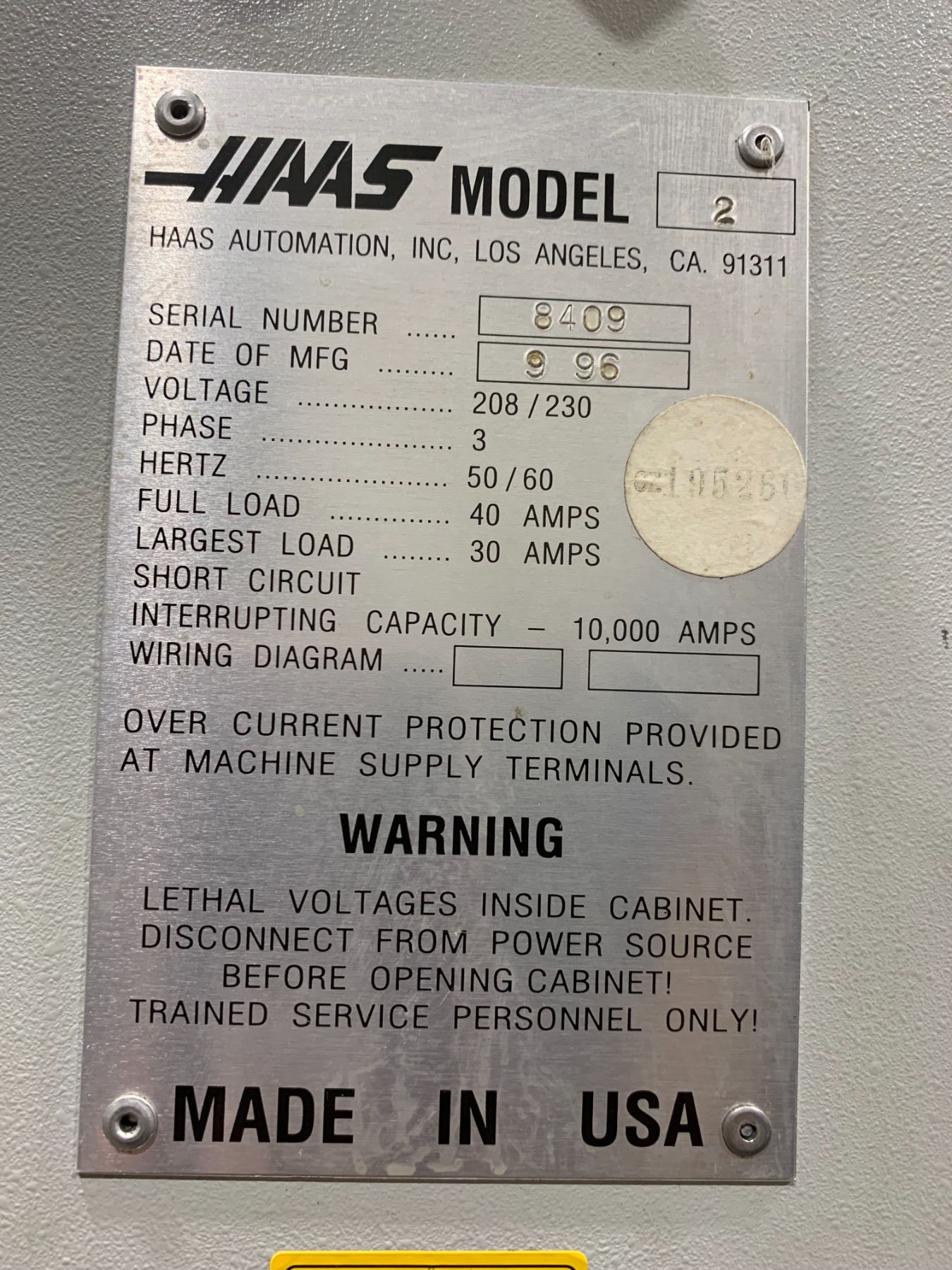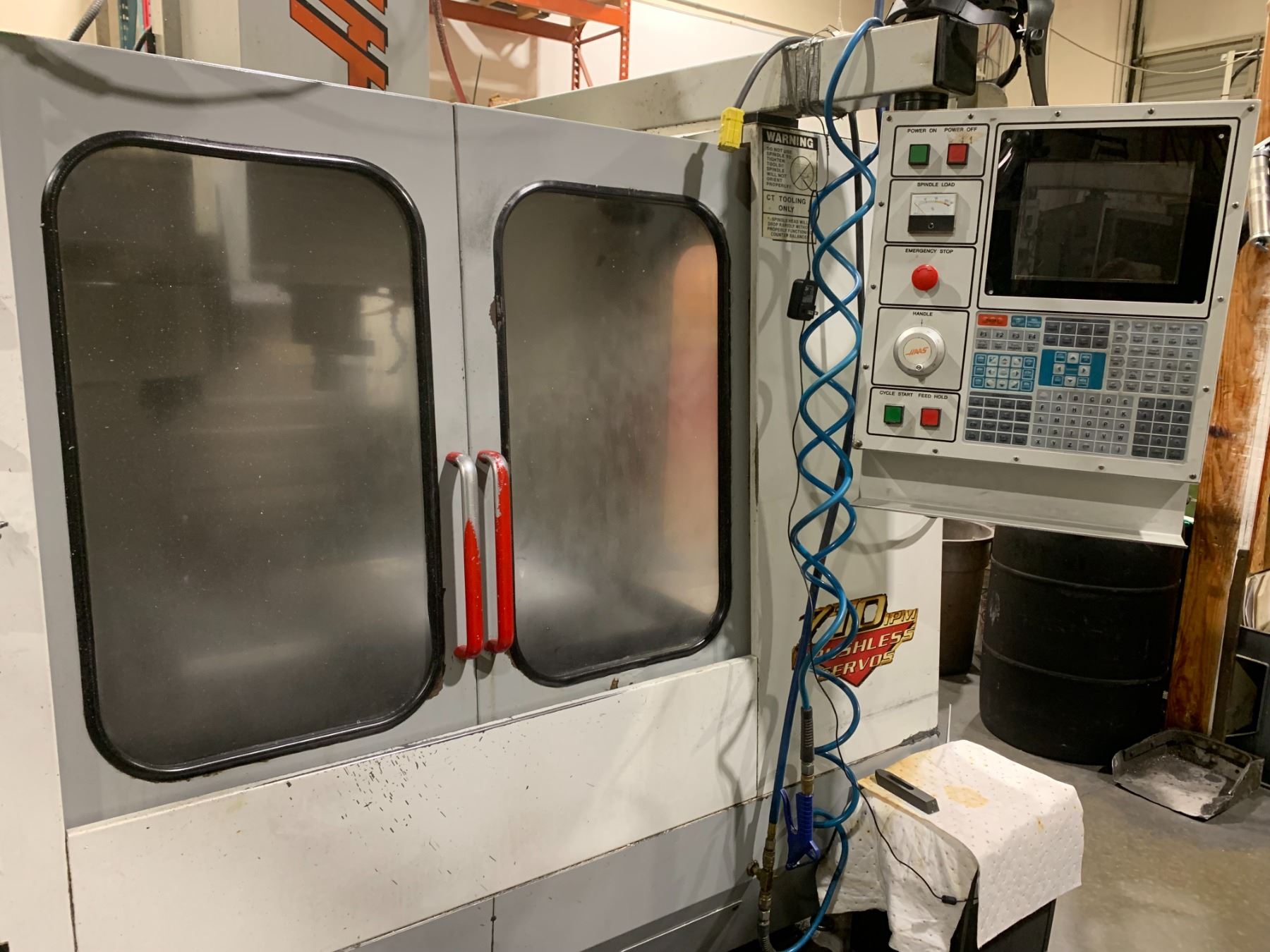 *H/C* 1996 HAAS VF 2 VERTICAL MILLING MACHINE W/UMBRELLA MOUNT 20 TOOL CAROUSEL *ALL TOOLING SOLD SEPARATELY* *REMOVAL OF THIS PIECE REQUIRES HIAB/CRANE LIFT AND HEAVY MOVING SKATES*