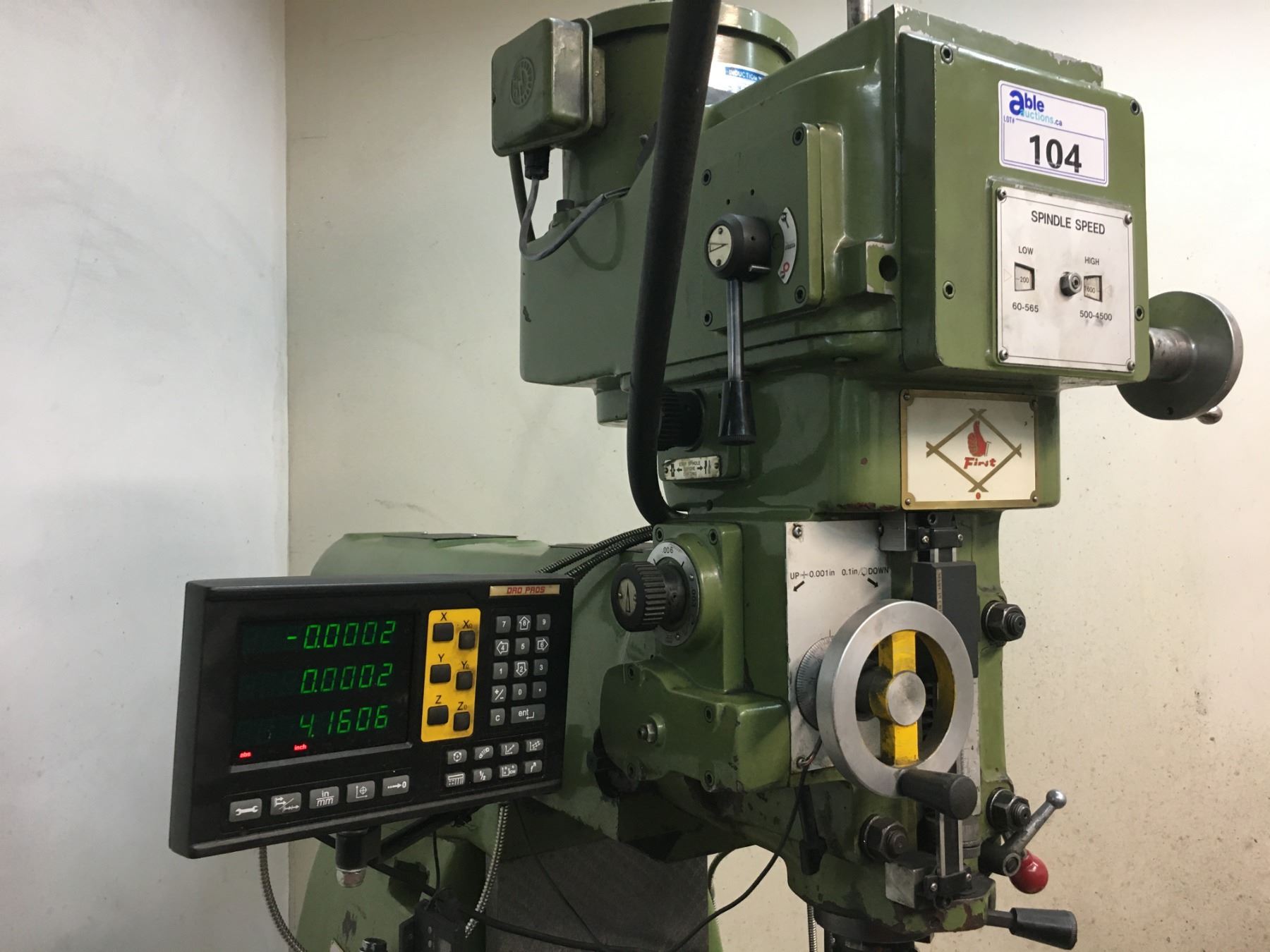 *H/C* FIRST MANUAL MILLING MACHINE -4FT TABLE BED, 3 HP SPINDLE MOTOR, DIGITAL READOUT,
