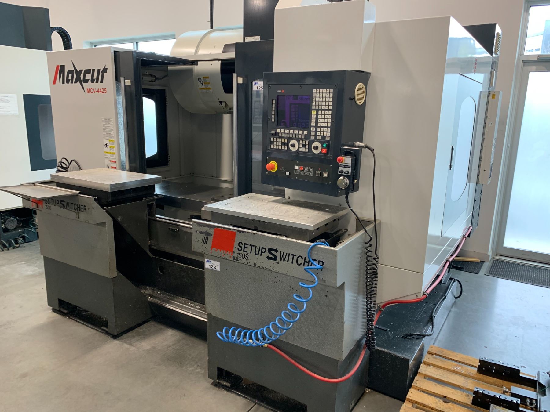 *H/C* MAXCUT MCV-4425 CNC MILL-44" X 25" X 24", 8,000 RPM SPINDLE, THRU COOLANT SPINDLE, 24 TOOL DUAL ARM CHANGER, CAT 40 *FAGOR CONTROLLER* **REMOVAL OF THIS MACHINE REQUIRES HIAB/CRANE LIFT AND HEAVY MOVING SKATES** ***SET-UP SWITCHER NOT INCLUDED***
