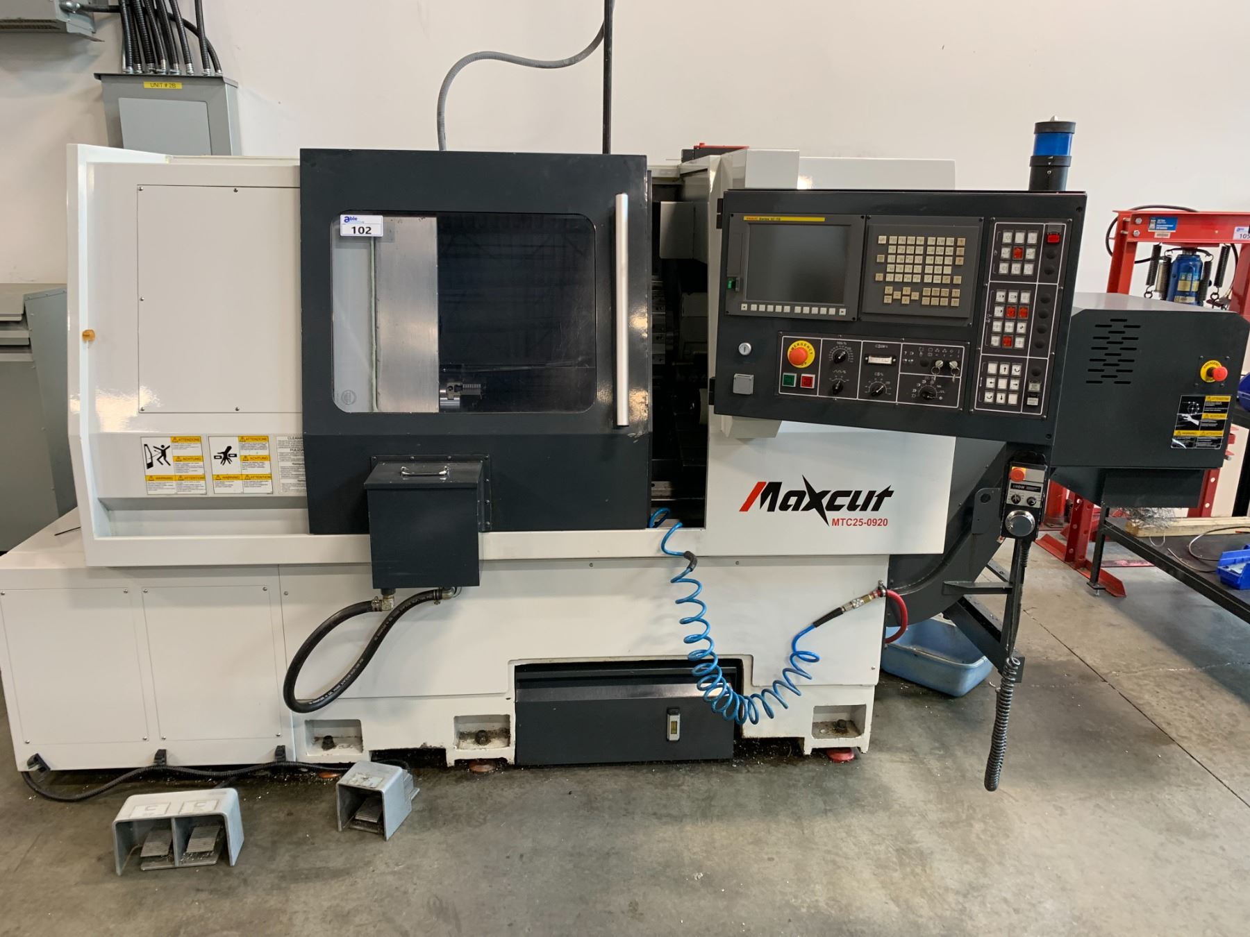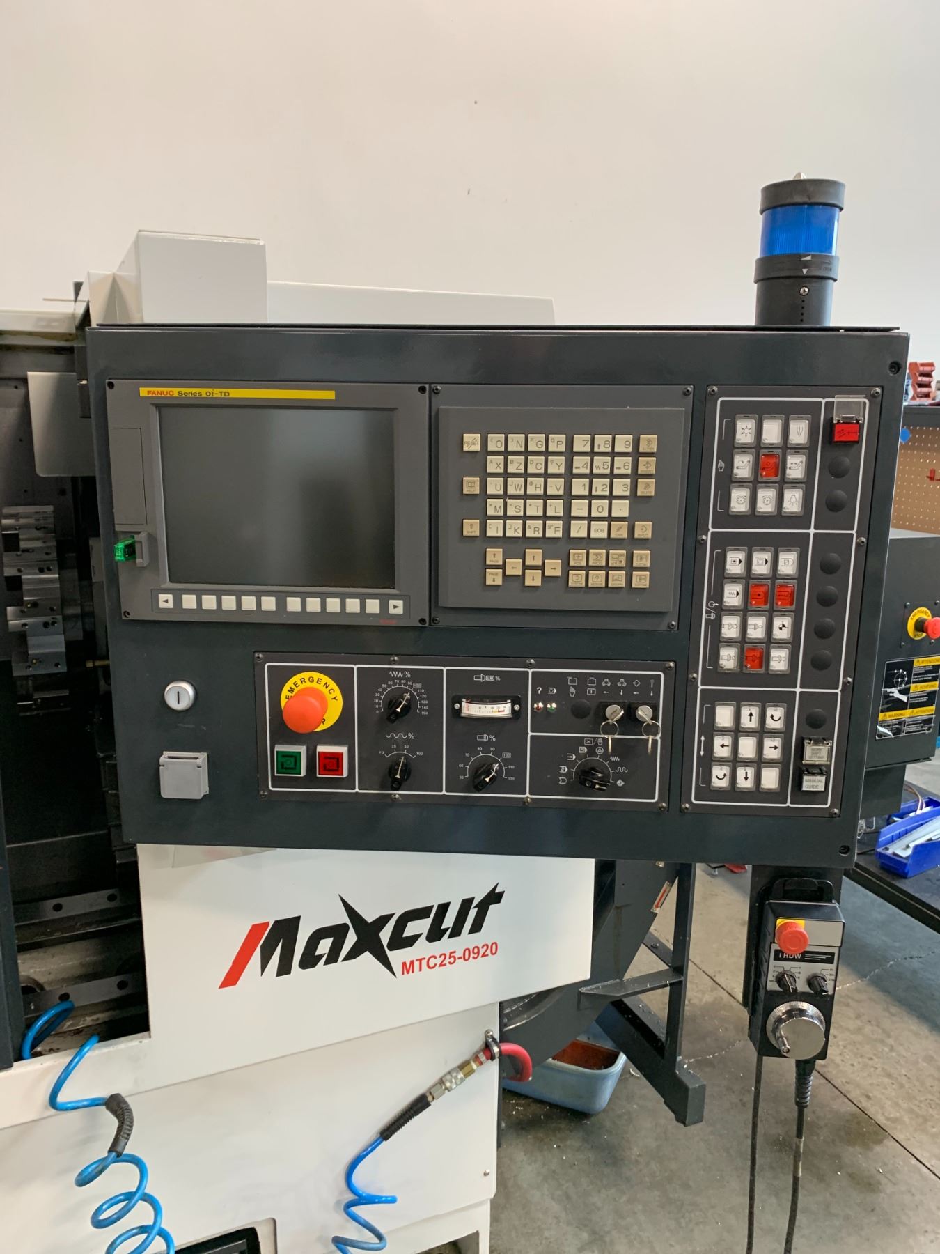 *H/C* MAXCUT MTC25-0920 CNC LATHE-9" DIAMETER X 20" TURNING LENGTH.12 TOOL TURRET, TAILSTOCK, TOOL TOUCH PROBE, PARTS CATCHER *FANUC SERIES OI-TD CONTROLLER* **REMOVAL OF THIS MACHINE REQUIRES HIAB/CRANE LIFT AND HEAVY MOVING SKATES**