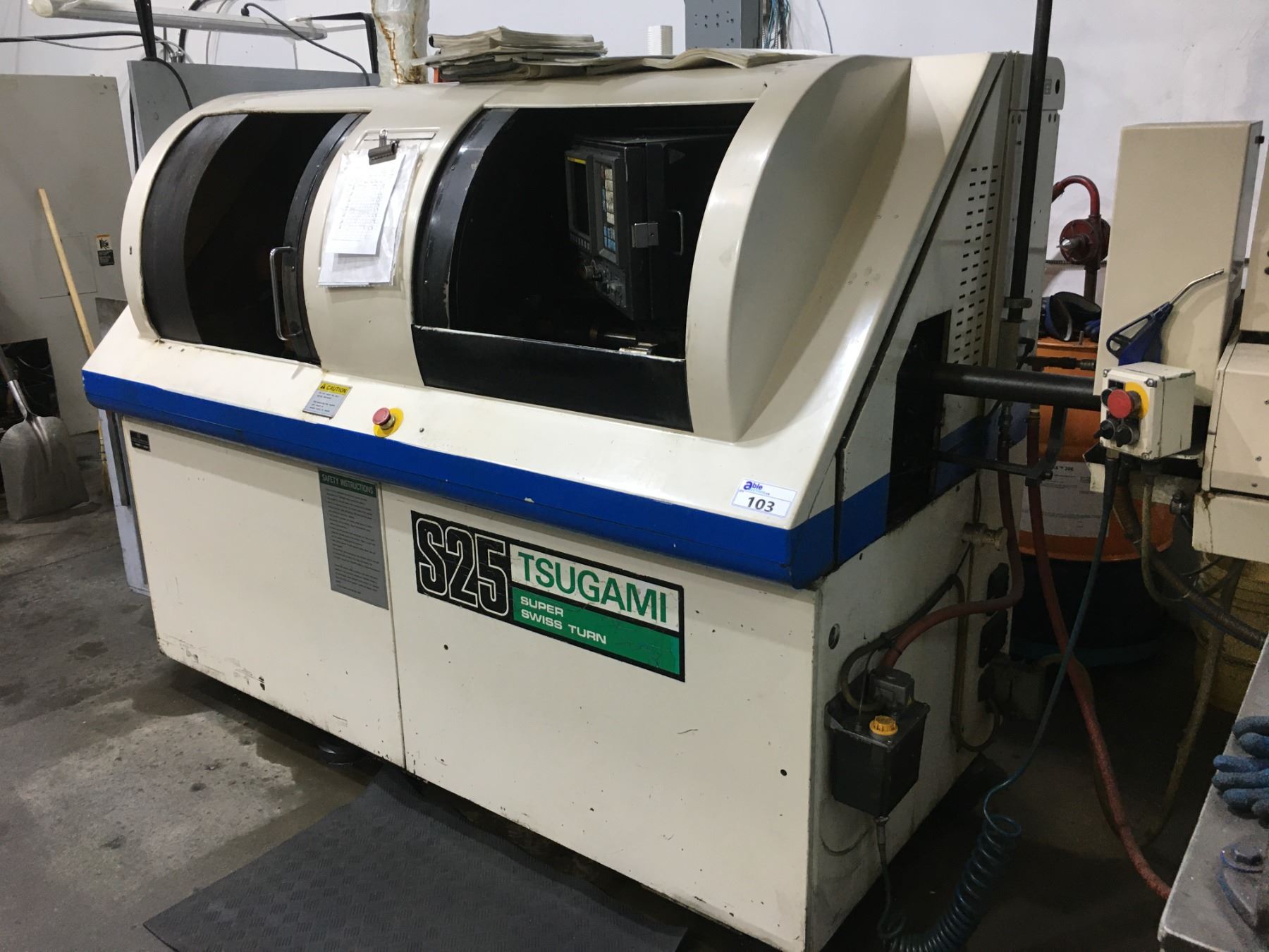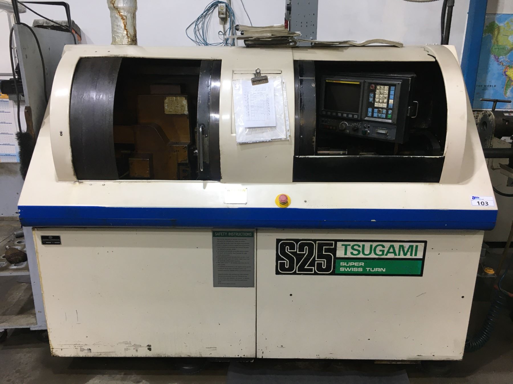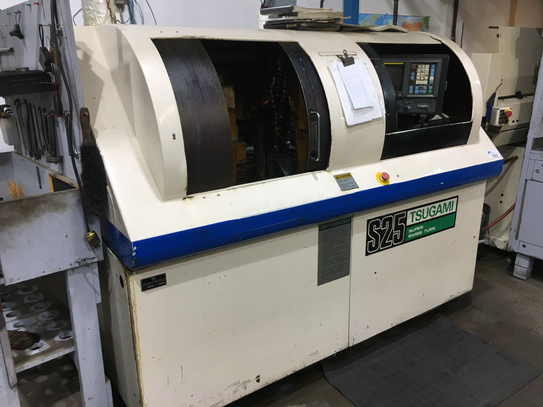 *H/C* TSUGAMI S25 CNC LATHE W/SUB-SPINDLE-FANUC CONTROLLER, 5 AXIS SWISS TURN, 12FT IEMCA BAR FEEDER **SPINDLE BEARING REPLACEMENT REQUIRED** **REMOVAL OF THIS MACHINE REQUIRES HIAB/CRANE LIFT AND HEAVY MOVING SKATES**
