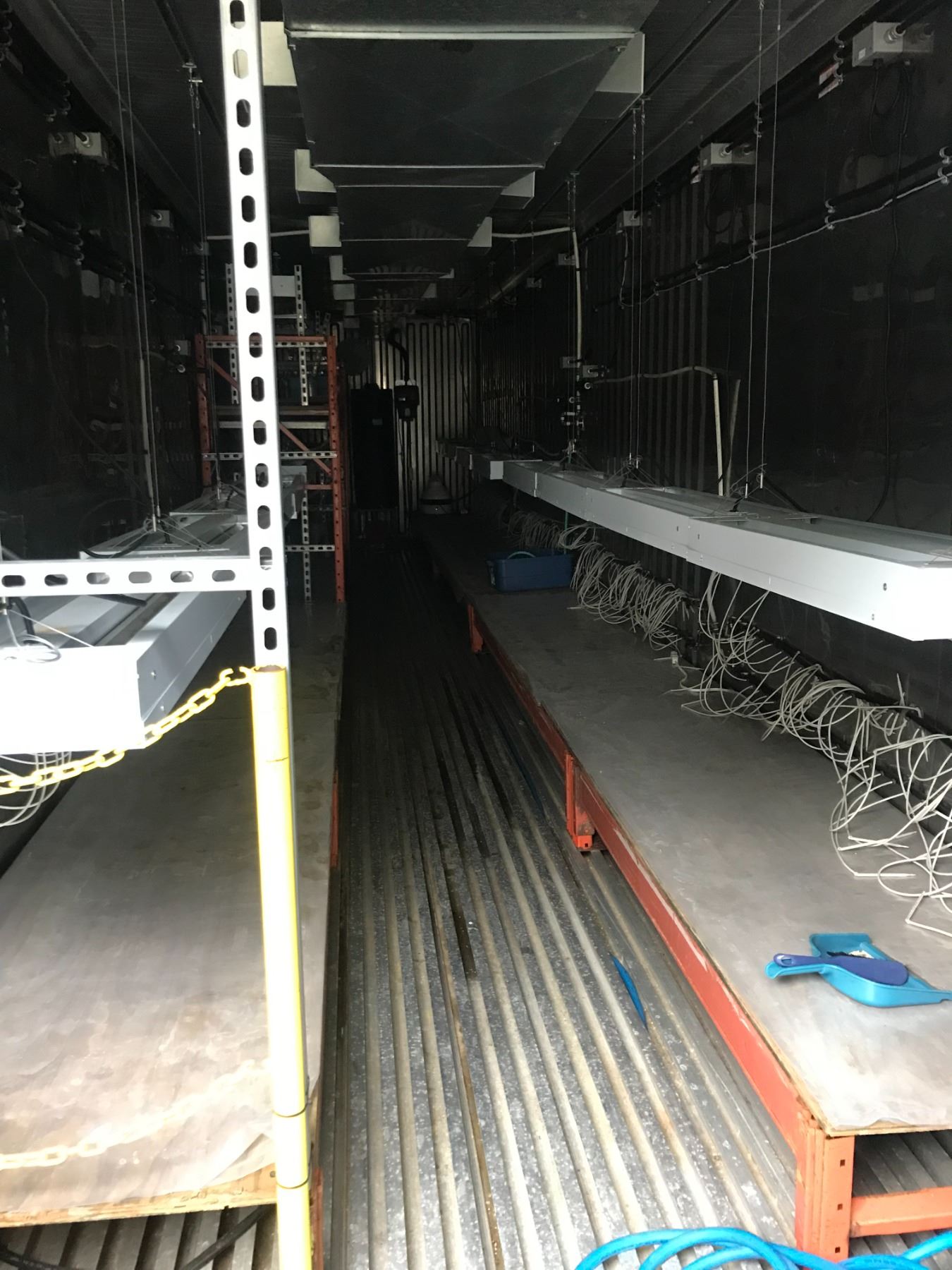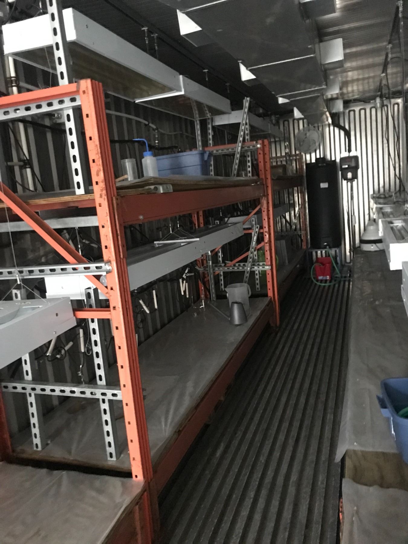 *H/T* 40FT C-CAN STORAGE CONTAINER WITH SELF CONTAINED GROWING ROOM SYSTEM **ALL WIRED WITH LIGHTS, TABLES, 2 LARGE WATER TANKS, ETC**, NO REGISTRATION OR PAPERWORK, *REQUIRES HIAB CRANE OR TILT DECK TRAILER TO TRANSPORT REMOVAL*