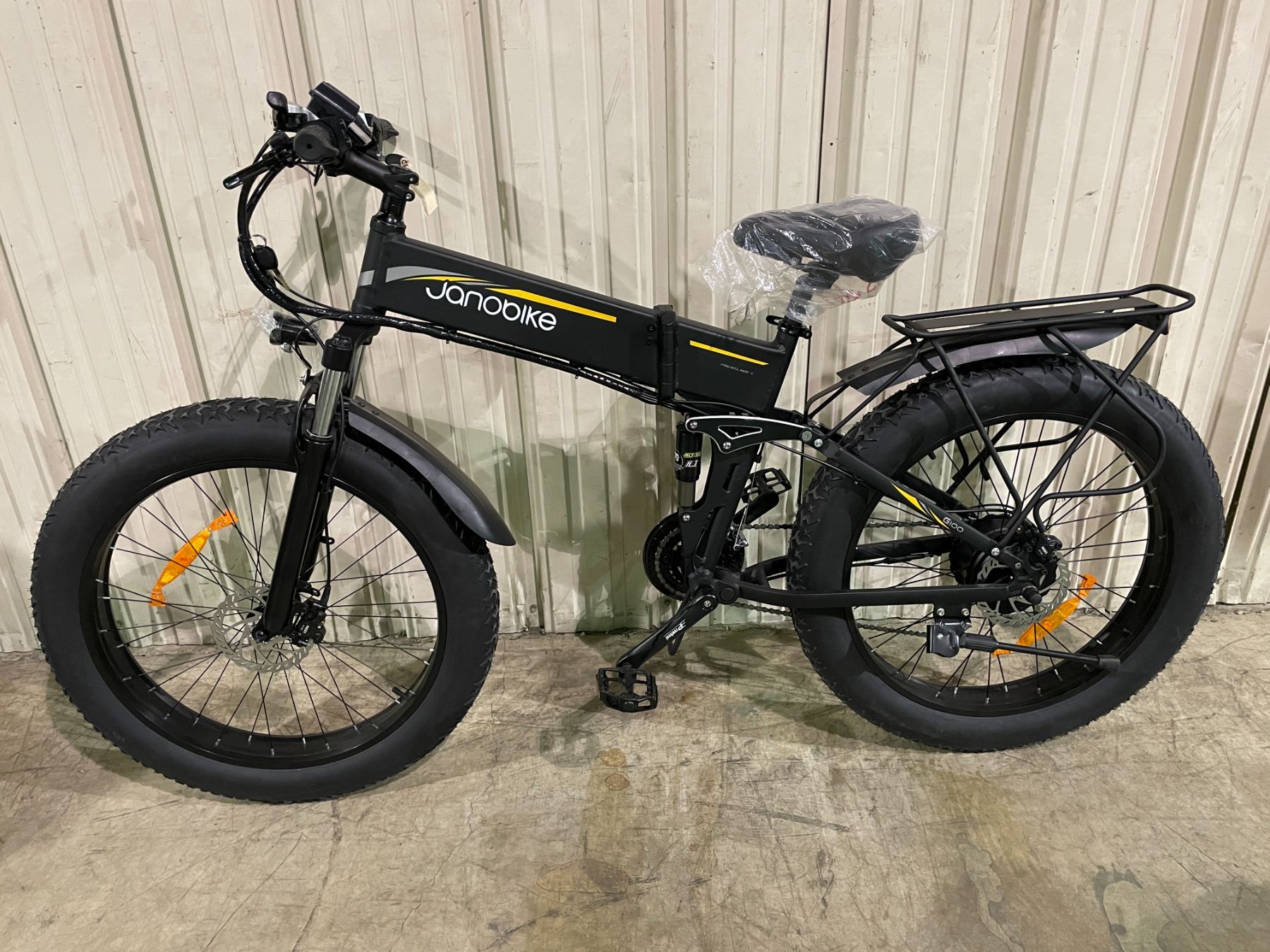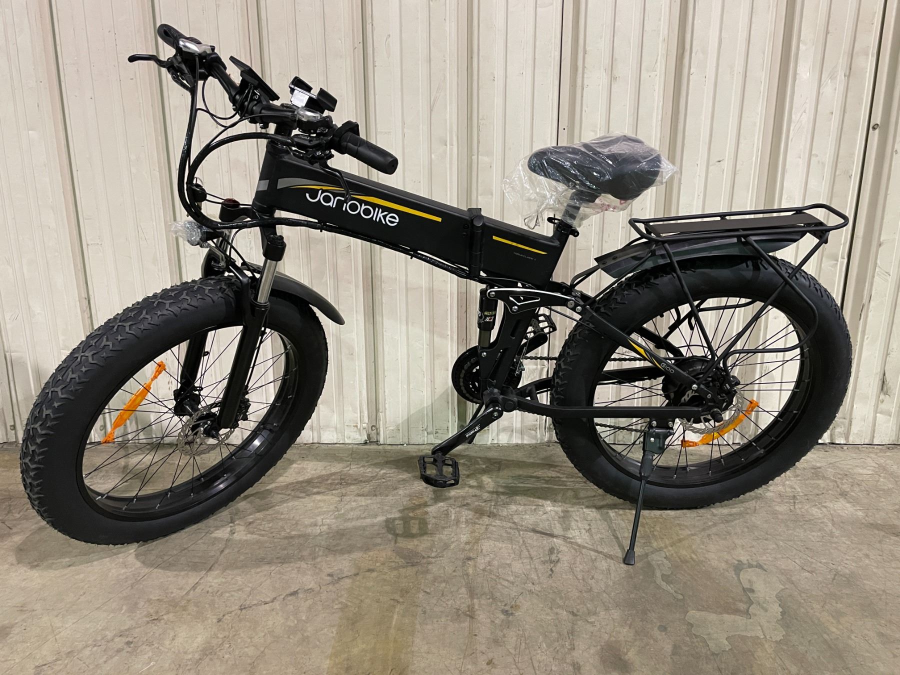 H26 ELECTRIC BIKE, FOLDABLE DUAL SHOCK MOUNTAIN E-BIKE. 500W/1000W MOTOR, 35 KMH MAX SPEED, 48 VOLT BATTERY, DISPLAY MONITOR, 4" X 26" TIRES, UP TO 75 KM RANGE, HYDRAULIC DISC BRAKES, 18" FRAME, 1 KG WEIGHT, FRONT AND REAR SUSPENSION, MAY OR MAY NOT INCLUDE LUGGAGE RACK, HAS POWER ADAPTER (UNASSEMBLED/IN BOX)