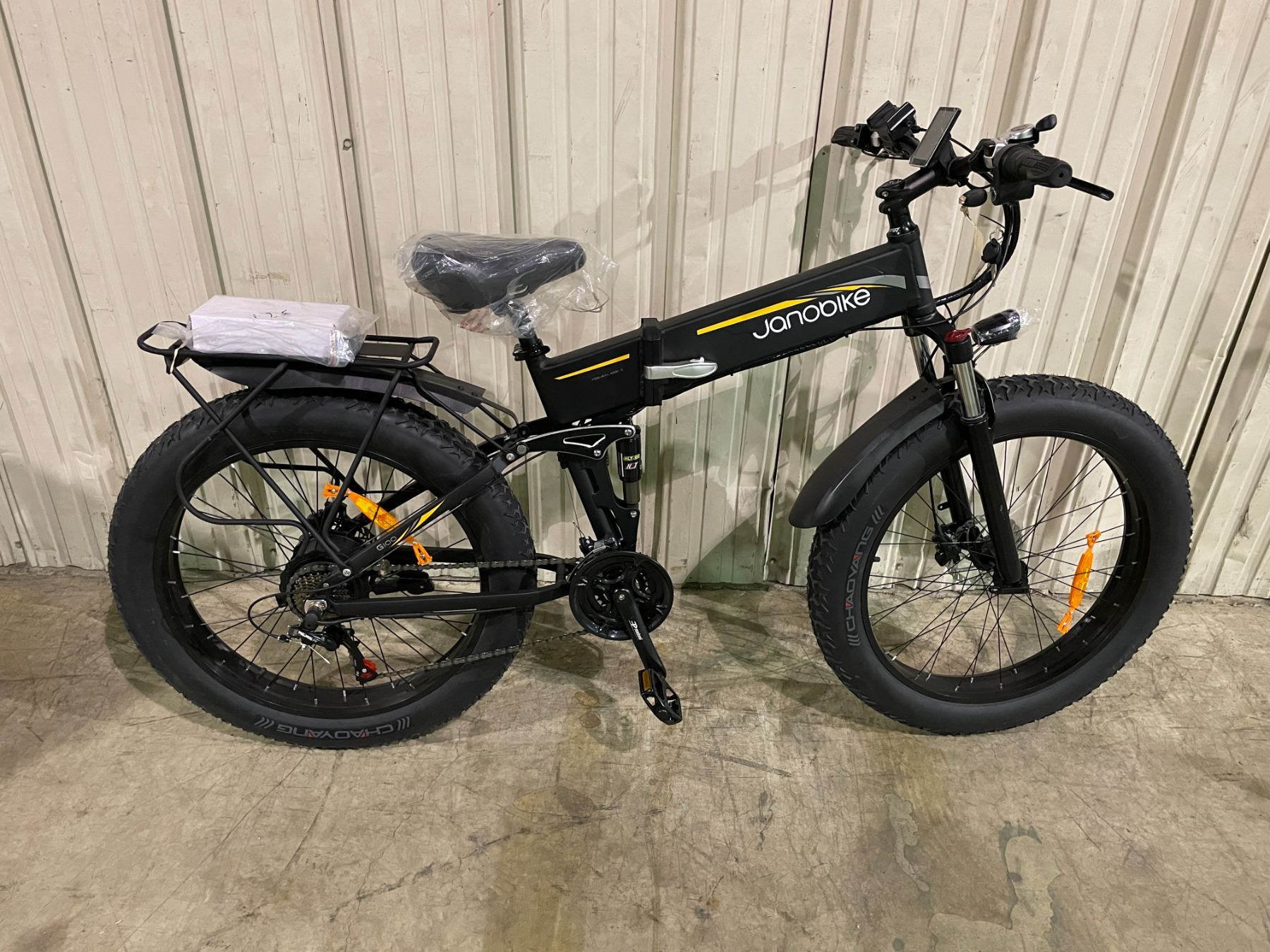 H26 ELECTRIC BIKE, FOLDABLE DUAL SHOCK MOUNTAIN E-BIKE. 500W/1000W MOTOR, 35 KMH MAX SPEED, 48 VOLT BATTERY, DISPLAY MONITOR, 4" X 26" TIRES, UP TO 75 KM RANGE, HYDRAULIC DISC BRAKES, 18" FRAME, 1 KG WEIGHT, FRONT AND REAR SUSPENSION, MAY OR MAY NOT INCLUDE LUGGAGE RACK, HAS POWER ADAPTER (UNASSEMBLED/IN BOX)