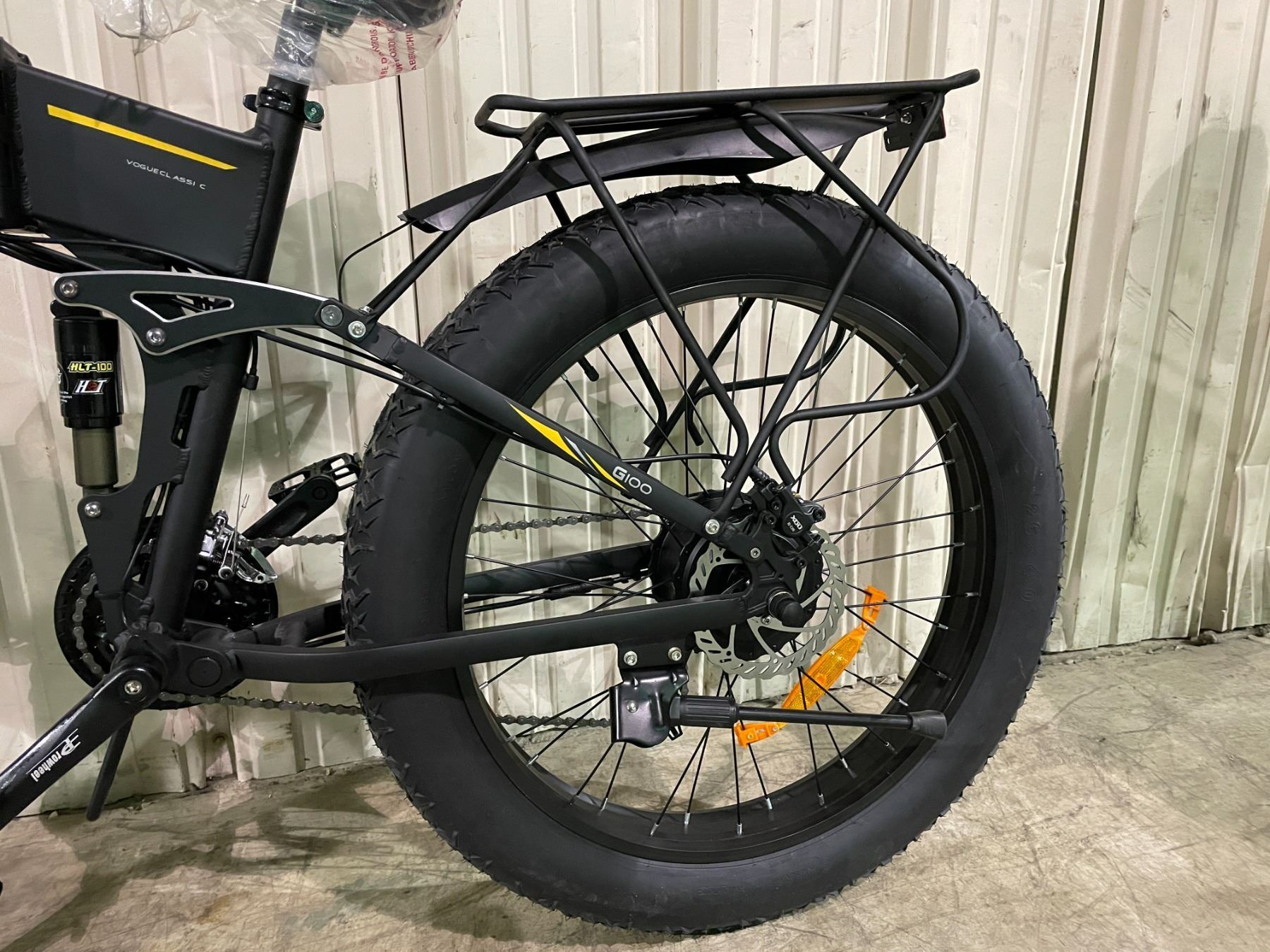 H26 ELECTRIC BIKE, FOLDABLE DUAL SHOCK MOUNTAIN E-BIKE. 500W/1000W MOTOR, 35 KMH MAX SPEED, 48 VOLT BATTERY, DISPLAY MONITOR, 4" X 26" TIRES, UP TO 75 KM RANGE HYDRAULIC DISC BRAKES, 18" FRAME, 31 KG WEIGHT, FRONT AND REAR SUSPENSION (MAY OR MAY NOT INCLUDE LUGGAGE RACK) IN BOX