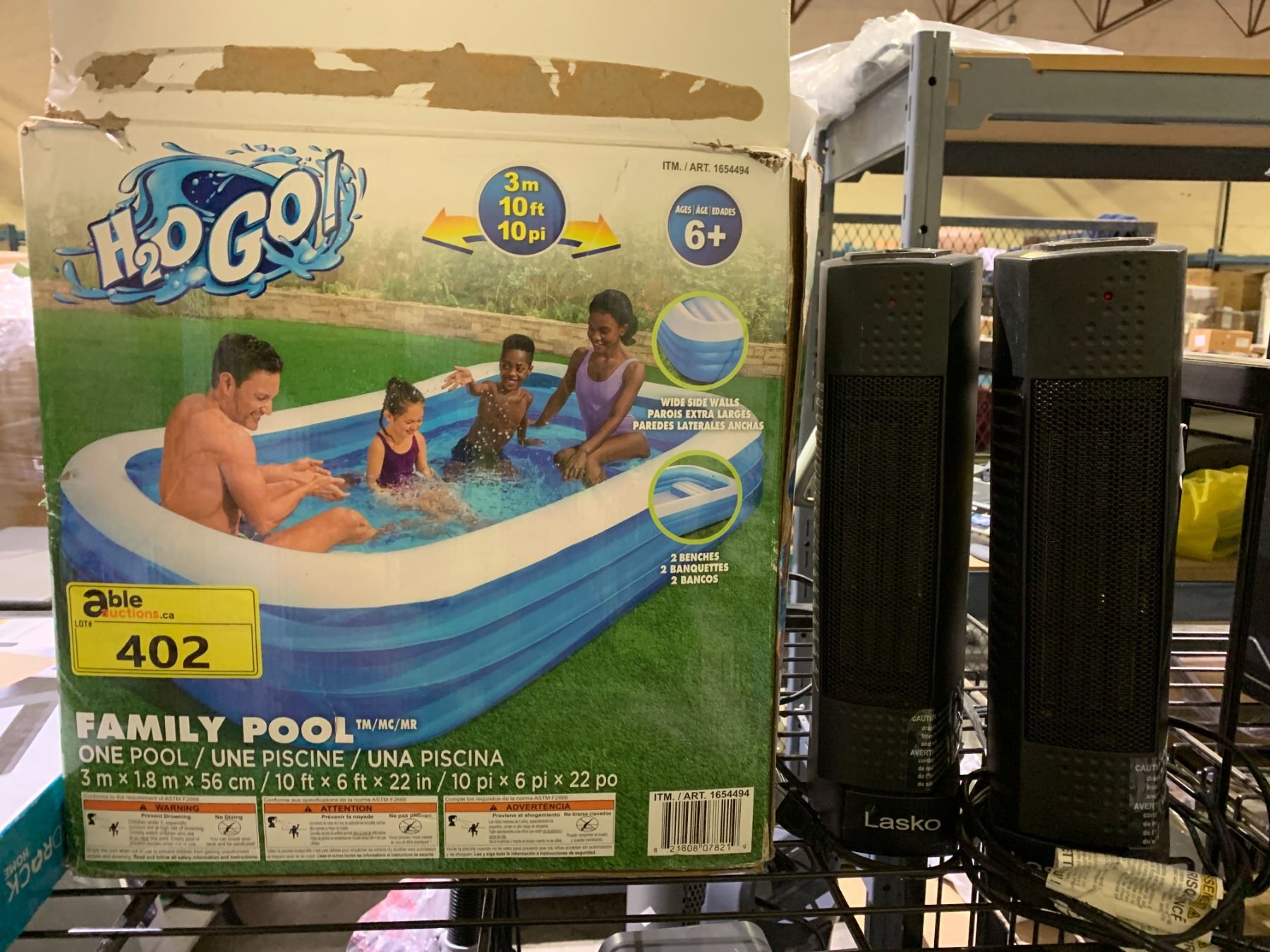 H2O GO! FAMILY POOL, 2 LASKO HEATERS & BIRDROCK MULTI TASKING BAMBOO LAP TRAY