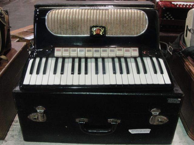 HAGSTROM ACCORDION COMPLETE WITH CASE - BLACK WITH GOLD AND CHROME ACCENTS