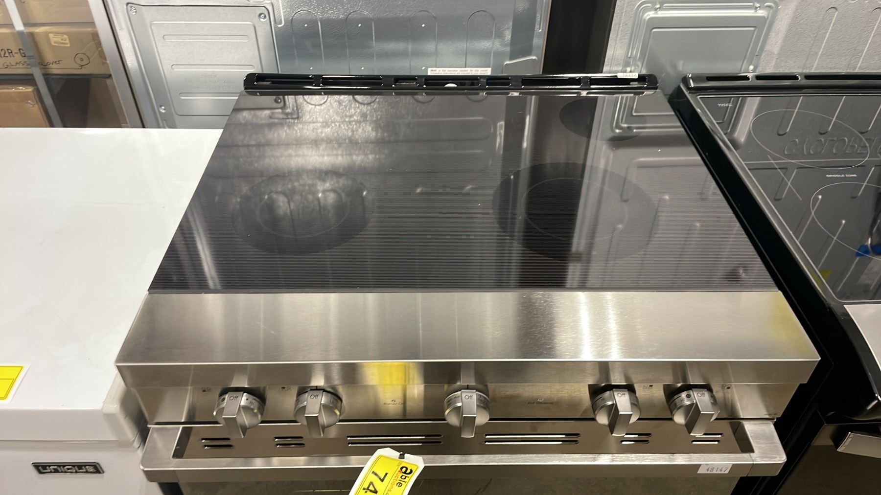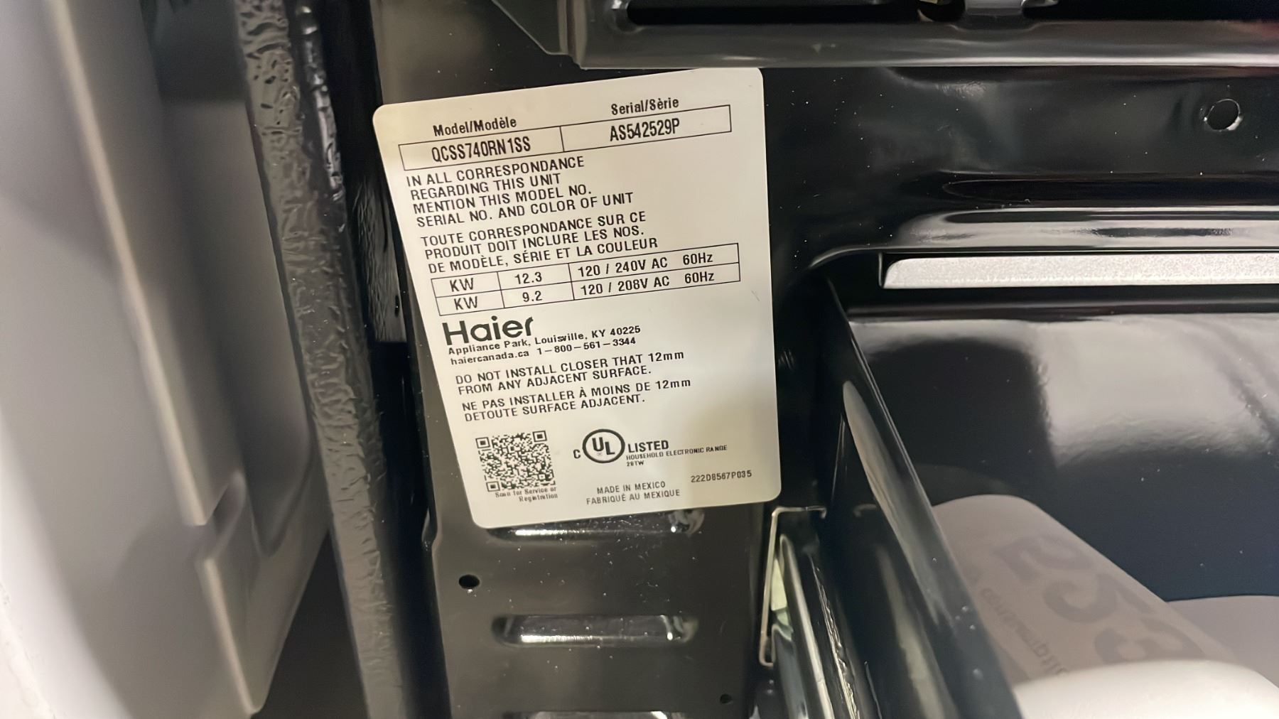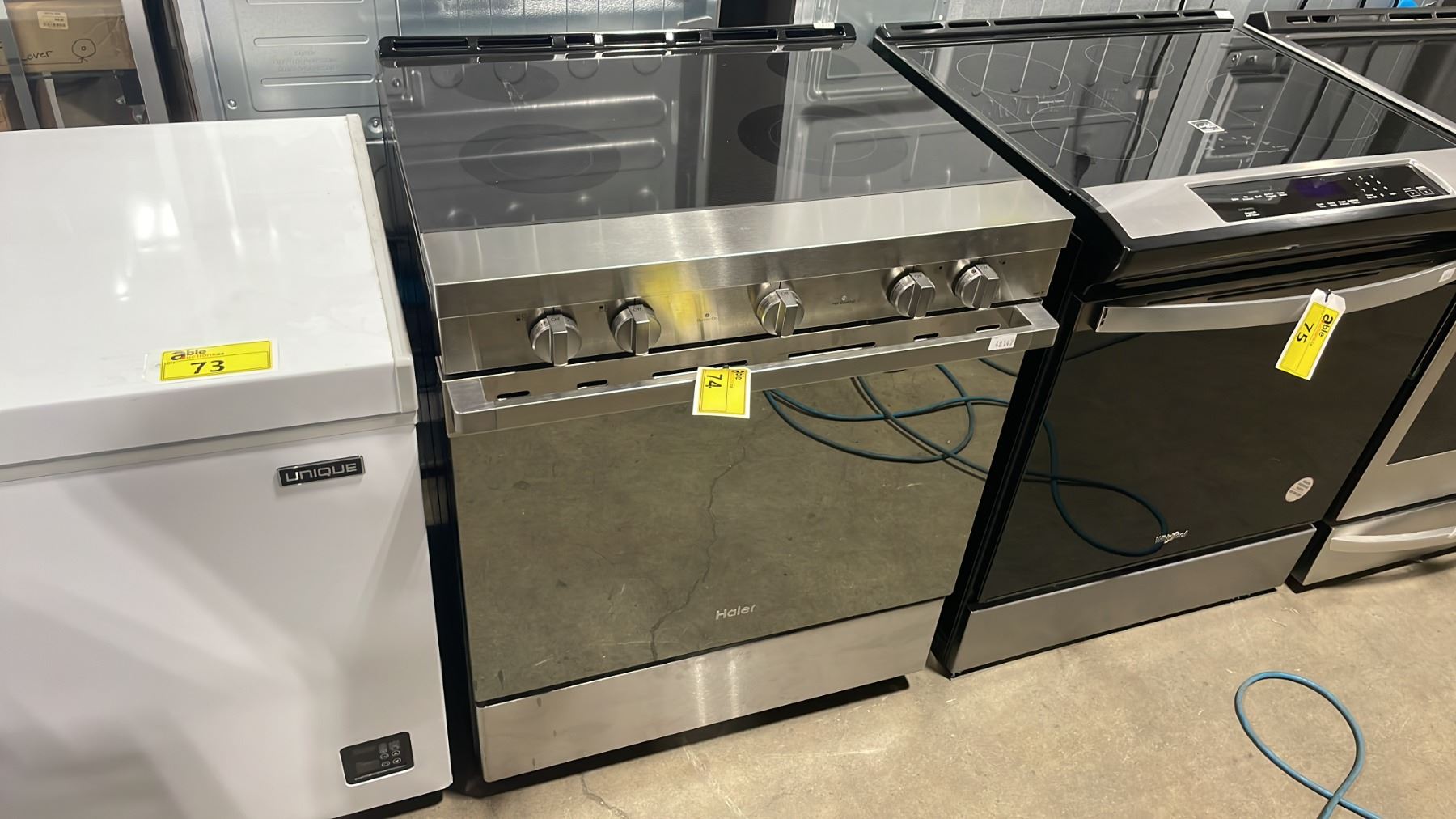 HAIER MODEL QCSS740RNSS. 30" STAINLESS STEEL SMART SLIDE-IN ELECTRIC RANGE CONVECTION COOKING, NO PRE-HEAT AIR FRY, FOUR BURNER, WI-FI CONNECTIVITY VIA THE SMARTHQ APP SN SHAS542529P RETAIL PRICE $2249.99