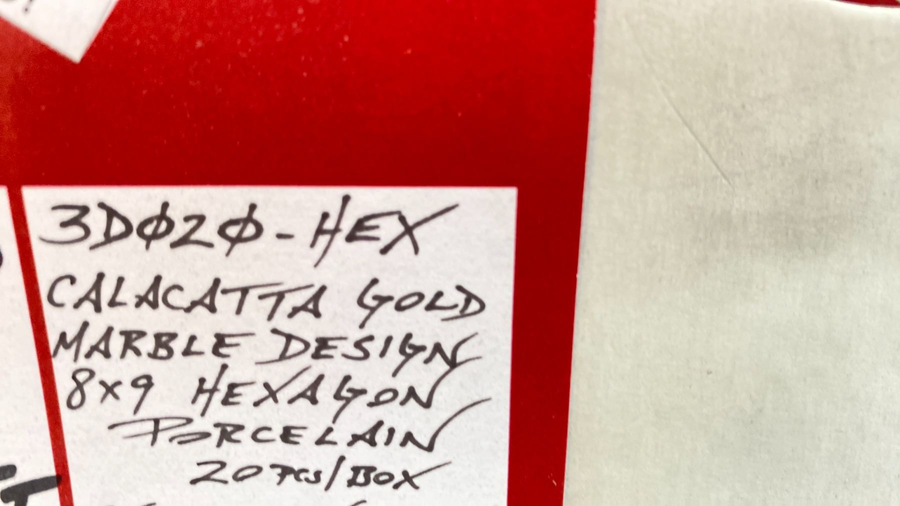 HALF PALLET OF HEXAGON PORCELAIN TILES IN CALCUTTA GOLD 10SQ.FT. PER BOX, APPROX 40 BOXES, APPROX 400SQ.FT. TOTAL