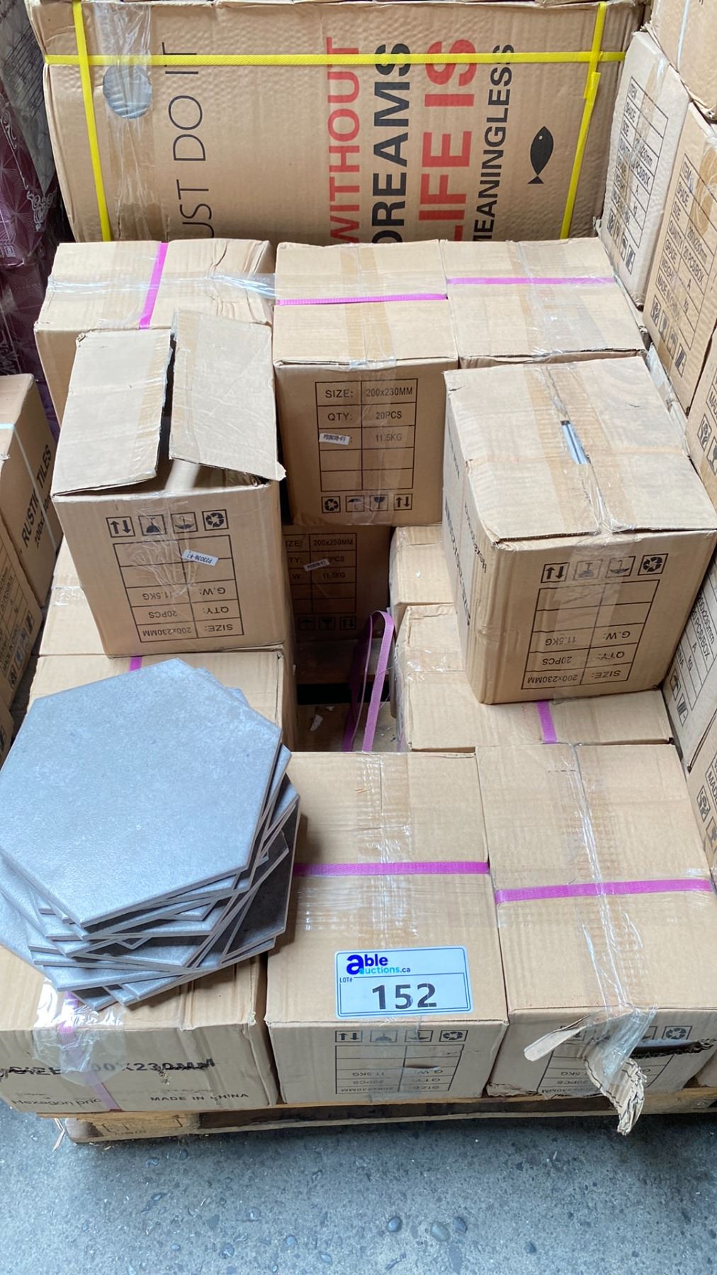 HALF PALLET OF HEXAGON PORCELAIN TILES IN DARK GREY 10SQ.FT. PER BOX, APPROX 15 BOXES, APPROX 150SQ.FT. TOTAL