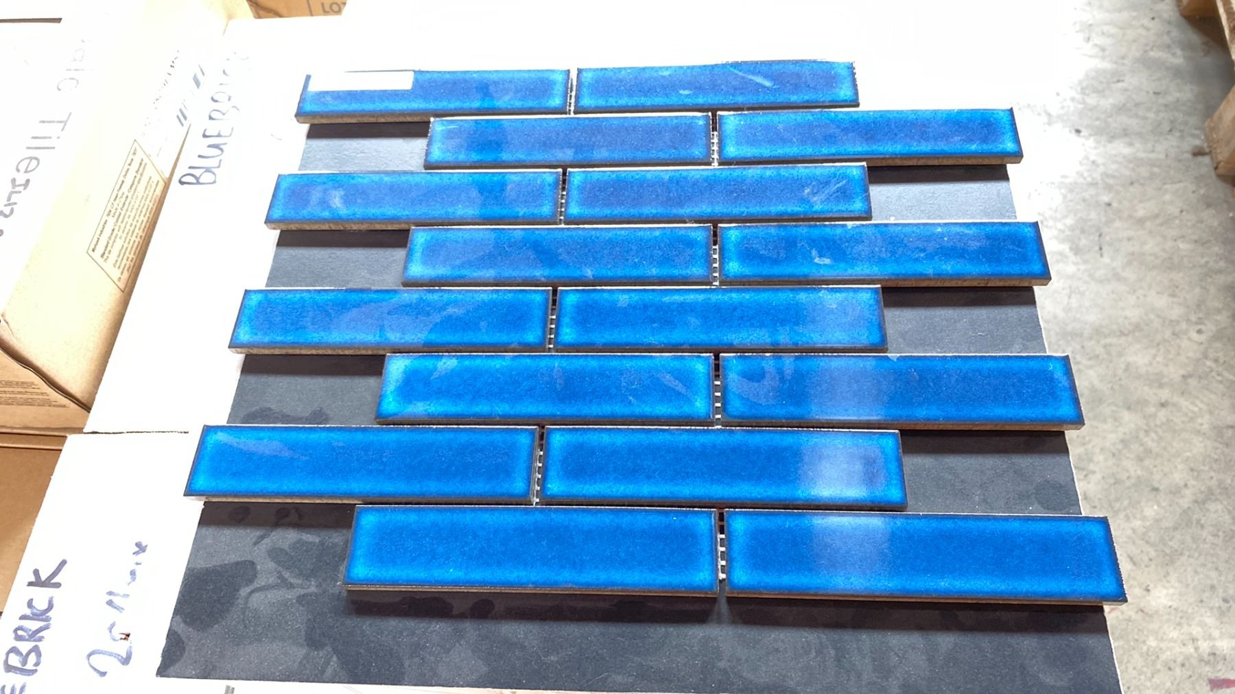 HALF PALLET OF PORCELAIN MOSAIC TILE IN BLUE BRICK, 13 BOXES, APPROX 260SQ.FT. TOTAL
