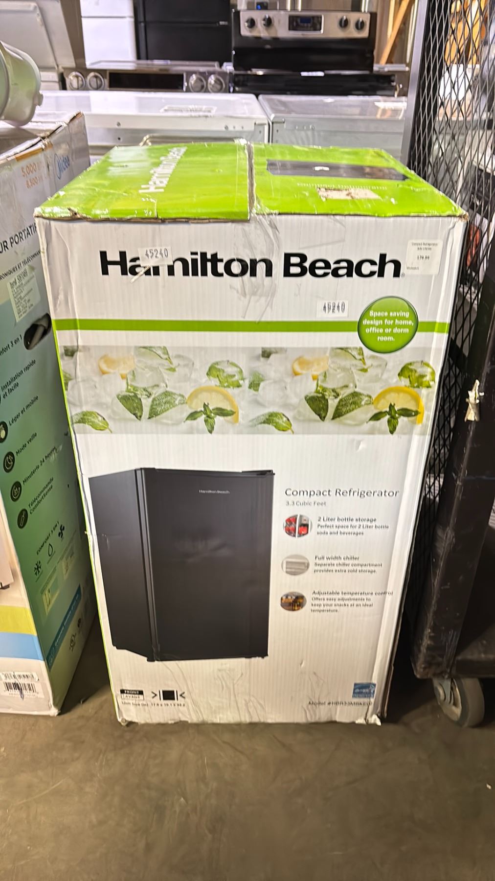 HAMILTON BEACH COMPACT REFRIGERATOR *WORKING CONDITION UNKNOWN/MAY BE MISSING PARTS AND/OR PIECES*