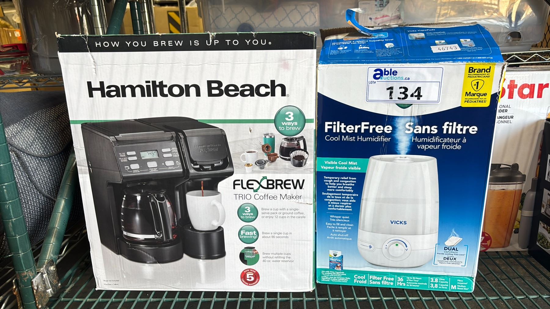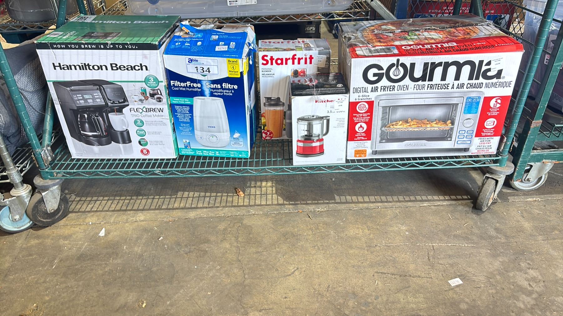 HAMILTON BEACH FLEX BREW TRIO COFFEE MAKER, GOURMIA 6 SLICE DIGITAL AIR FRYER OVEN, KITCHEN AID 3.5 CUP FOOD CHOPPER, STARFRIT PERSONAL BLENDER & A VICKS FILTER FREE COOL MIST HUMIDIFIER