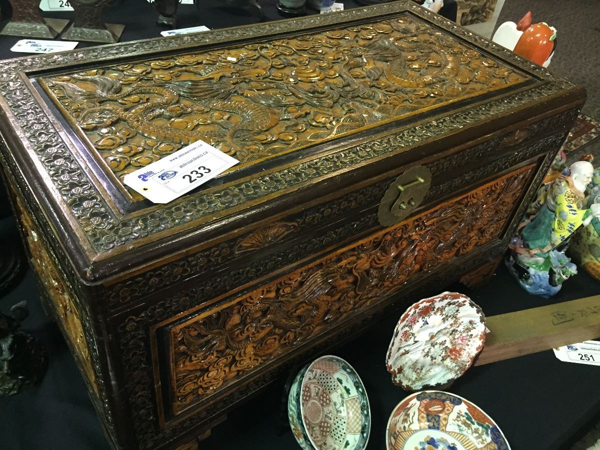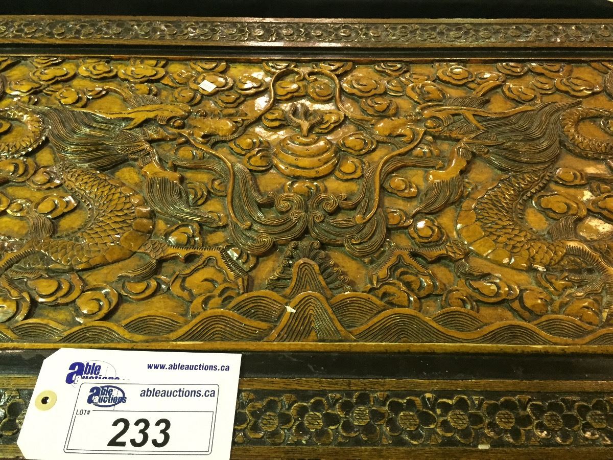 HANCARVED, VINTAGE JAPANESE DRAGON BLANKET BOX 40" X 21"