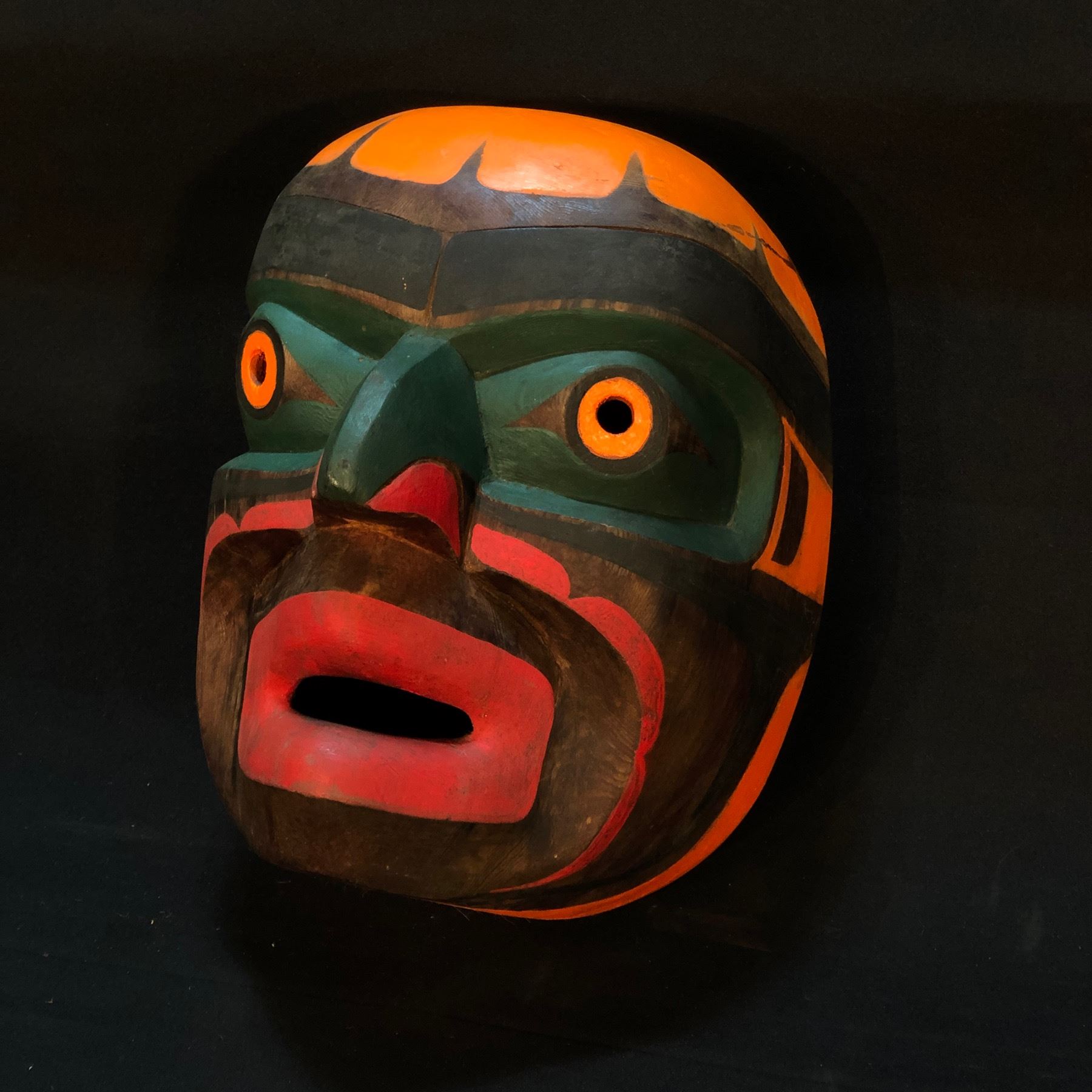 HAND CARVED AND PAINTED WILD MAN MASK, ARTIST UNKNOWN, APPROX. 11'' TALL
