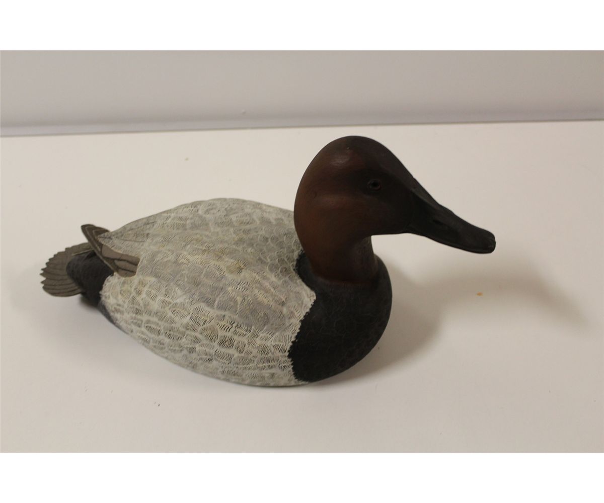 HAND CARVED CANVASBACK DRAKE, SIGNED WAYNE JONES DATED 1991