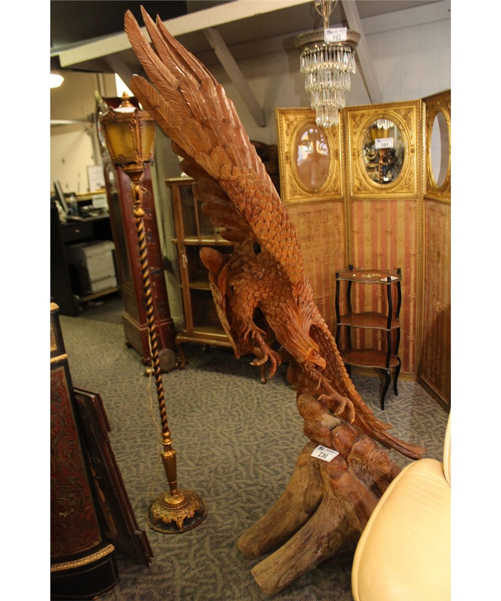 HAND CARVED EAGLE, BY MASTER CARVER FROM ONE LOG 70" HIGH