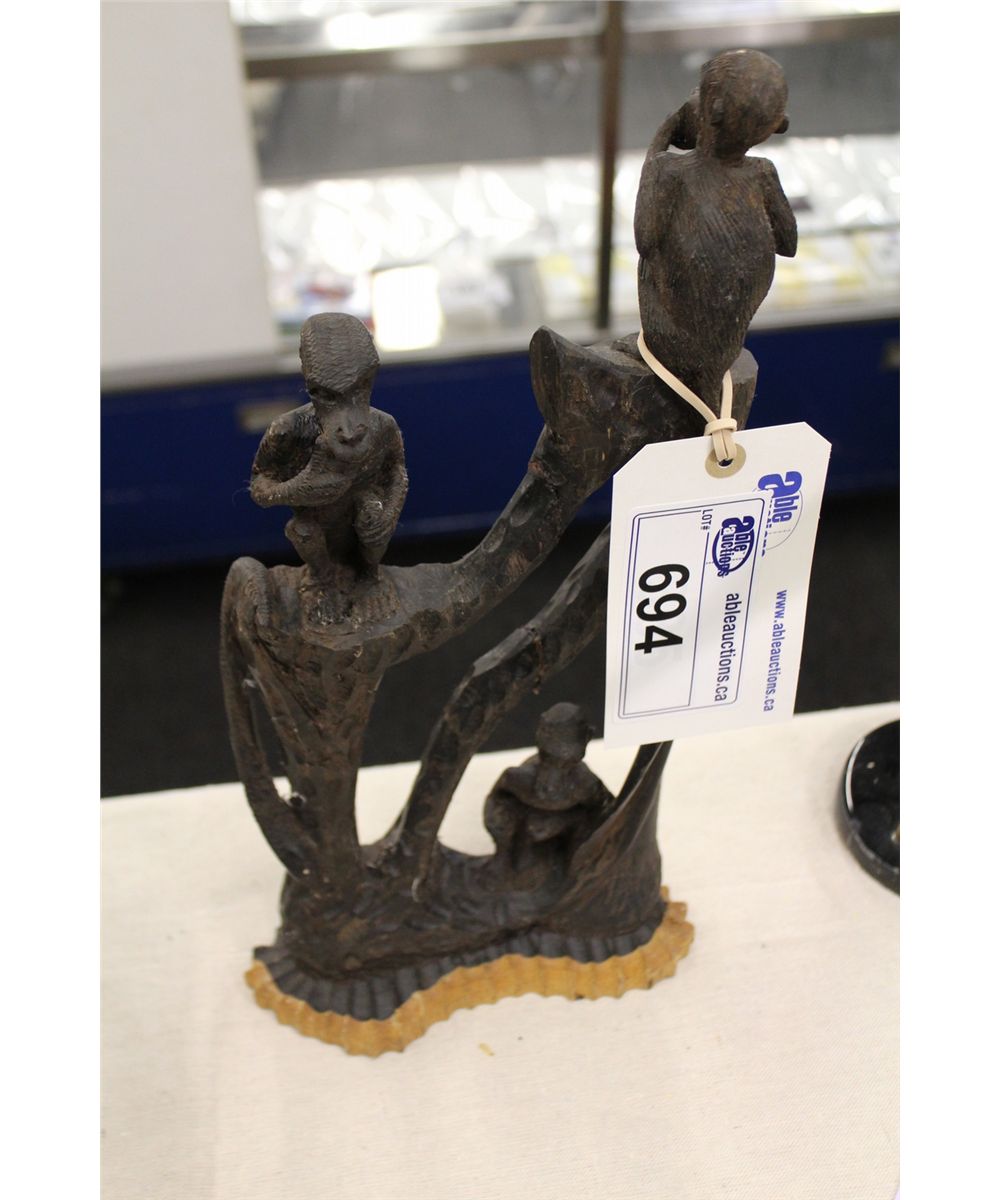 HAND CARVED EBONY MONKEYS ON TREES, 17'' H