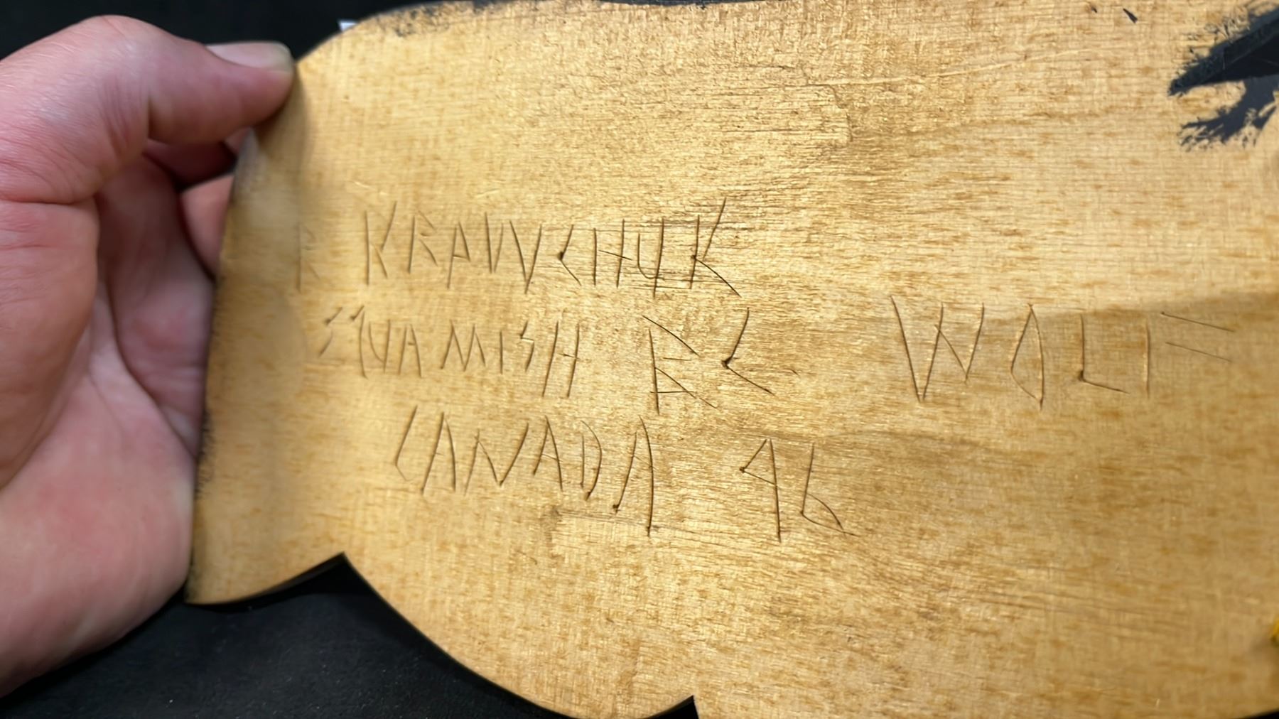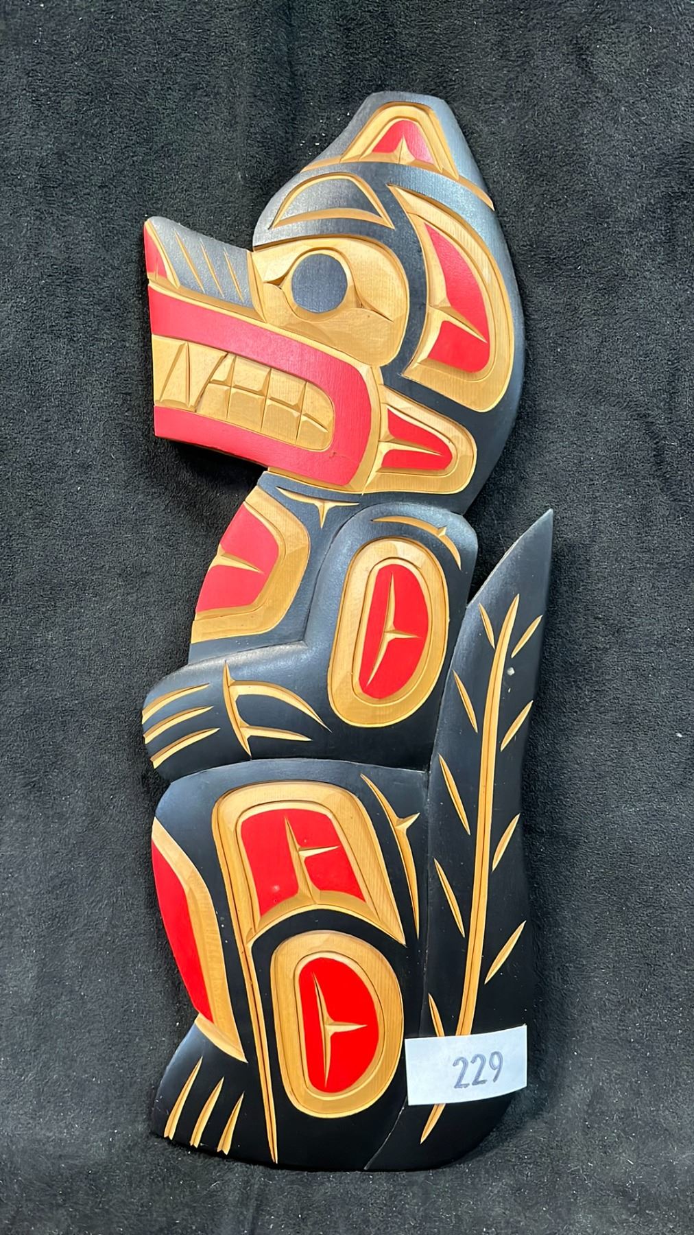 HAND CARVED FIRST NATIONS PLAQUE BY RICHARD KRAWCHUCK TITLED "WOLF" 12" X 4.5"