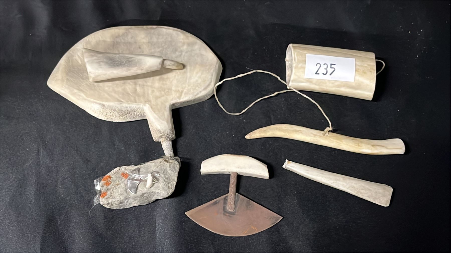 HAND CARVED INUIT BONE SCULPTURES & SOAPSTONE CARVINGS