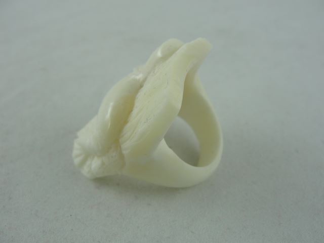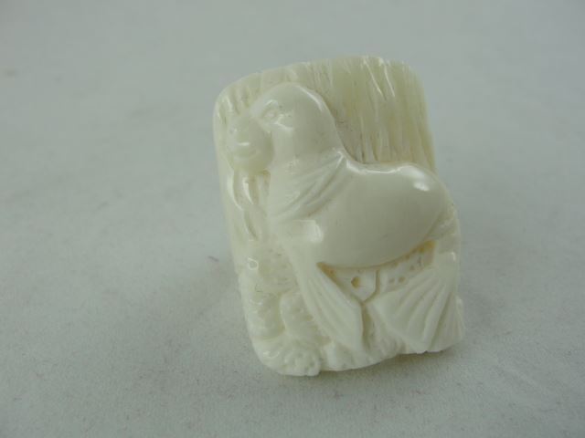 HAND CARVED WALRUS MOTIF RING IN BUFFALO BONE
