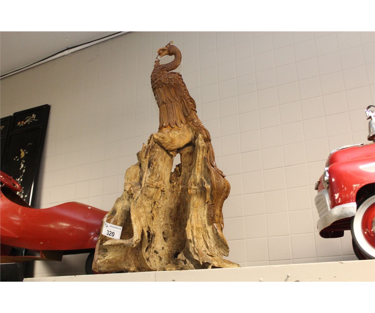 HAND CARVED WOOD SCUPLTURE OF A BIRD 36" HIGH