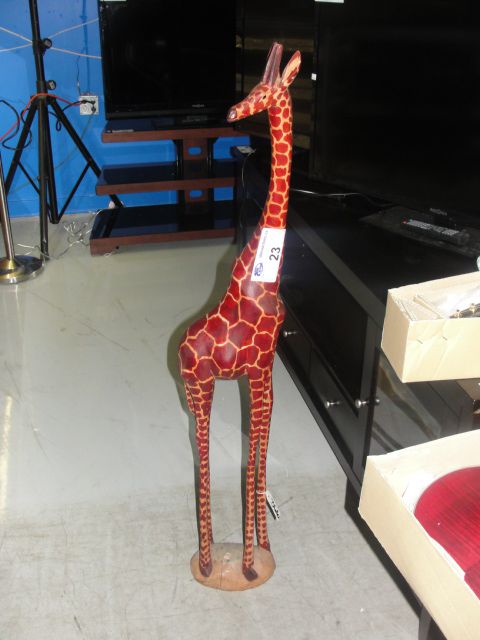 HAND CRAFTED WOOD CARVED APPROX 3F TALL GIRAFFE