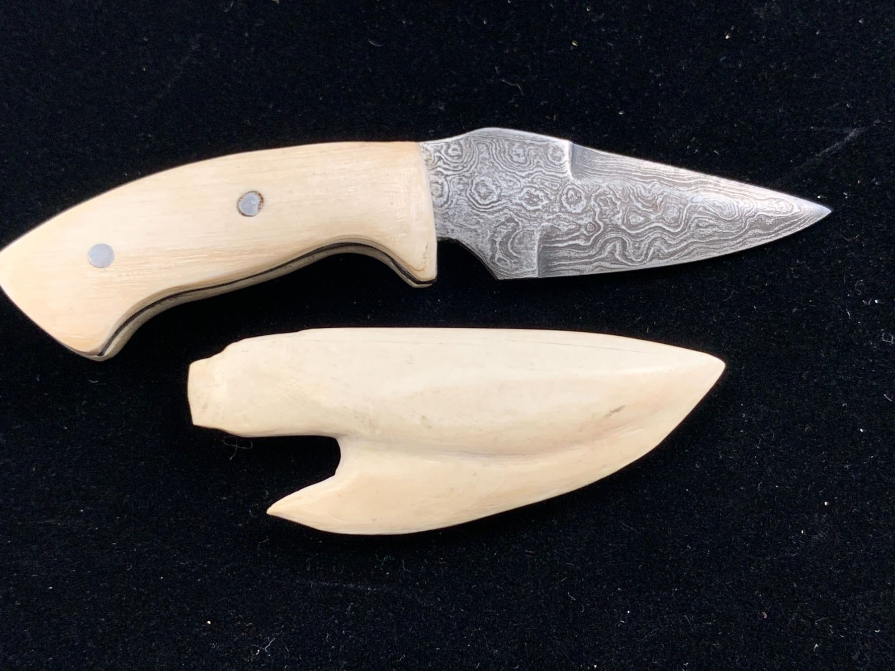 HAND FORGED DAMASCUS KNIFE & PIECE OF BONE