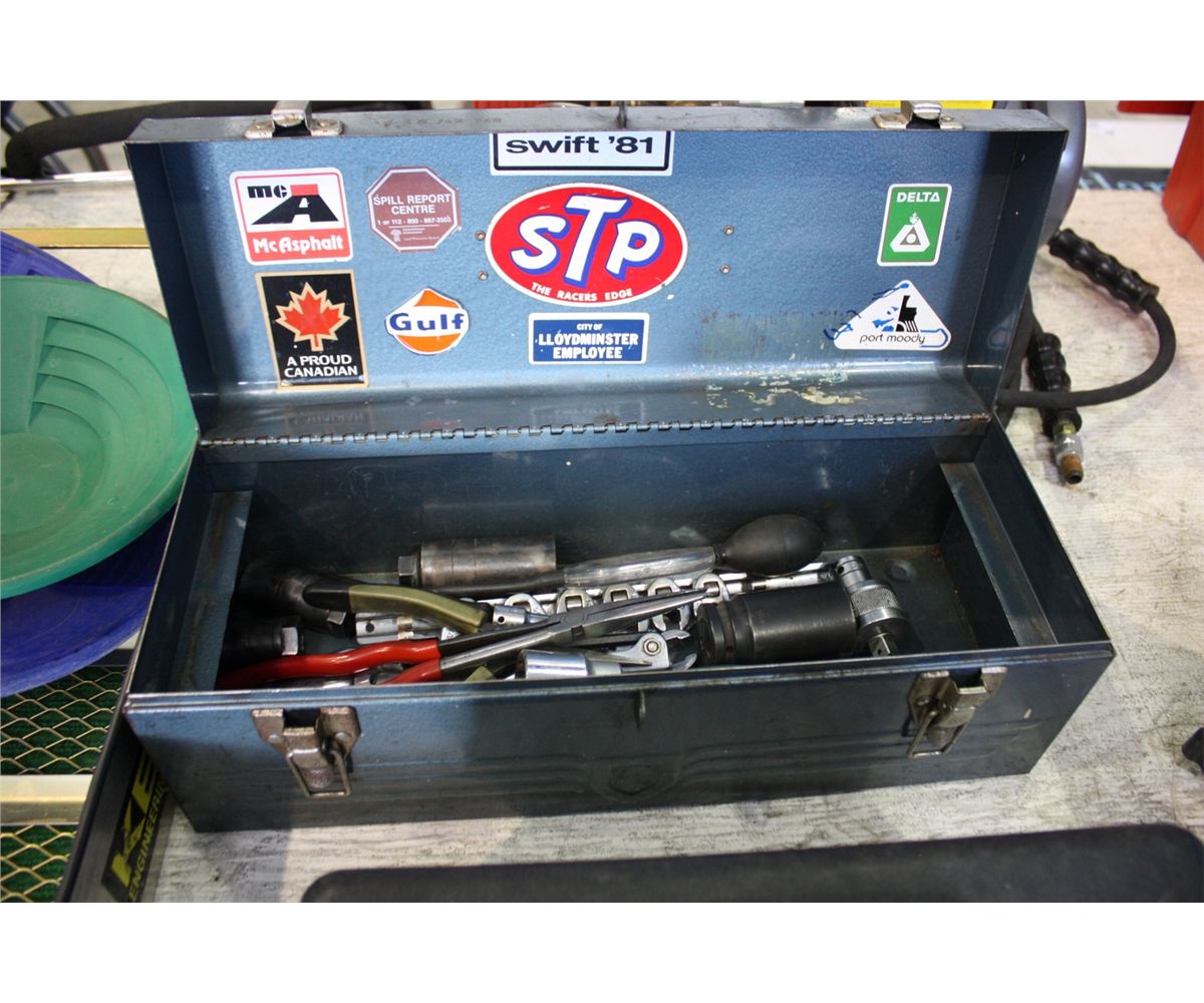 HAND HELD GOLD SLOUGH, TOOLBOX AND CONTENTS
