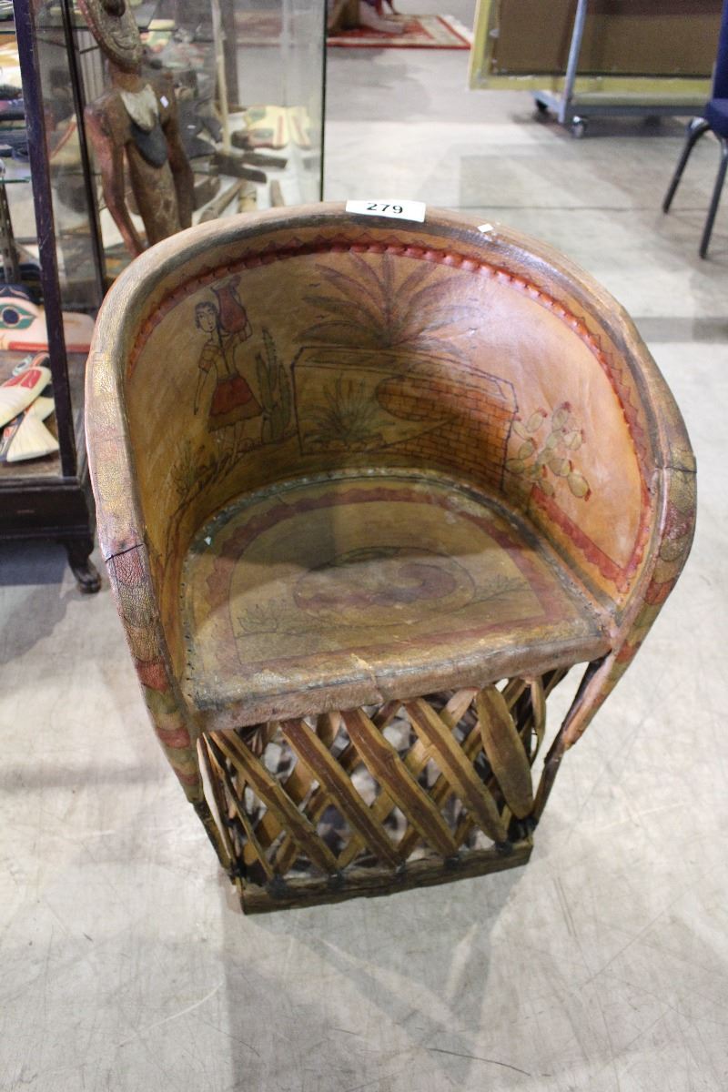 HAND MADE AND PAINTED, COW HIDE AND WOOD FRAME CHAIR