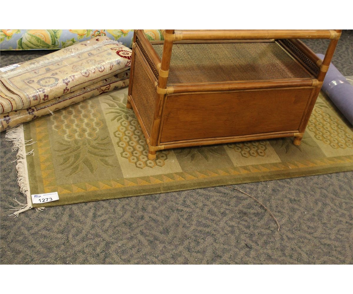 HAND MADE QUALITY GREEN WOVEN CARPET 37" X 73"