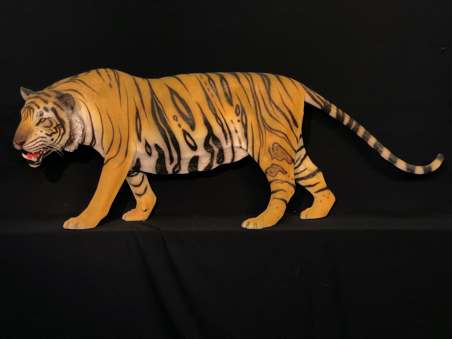 HAND PAINTED LIFE SIZE FIBREGLASS TIGER SCULPTURE, APPROX. 7' 2" LONG