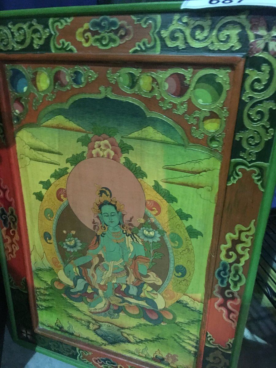 HAND PAINTED ON WOOD EASTERN CULTURE DEITY APPROX 1.5FT X 2FT
