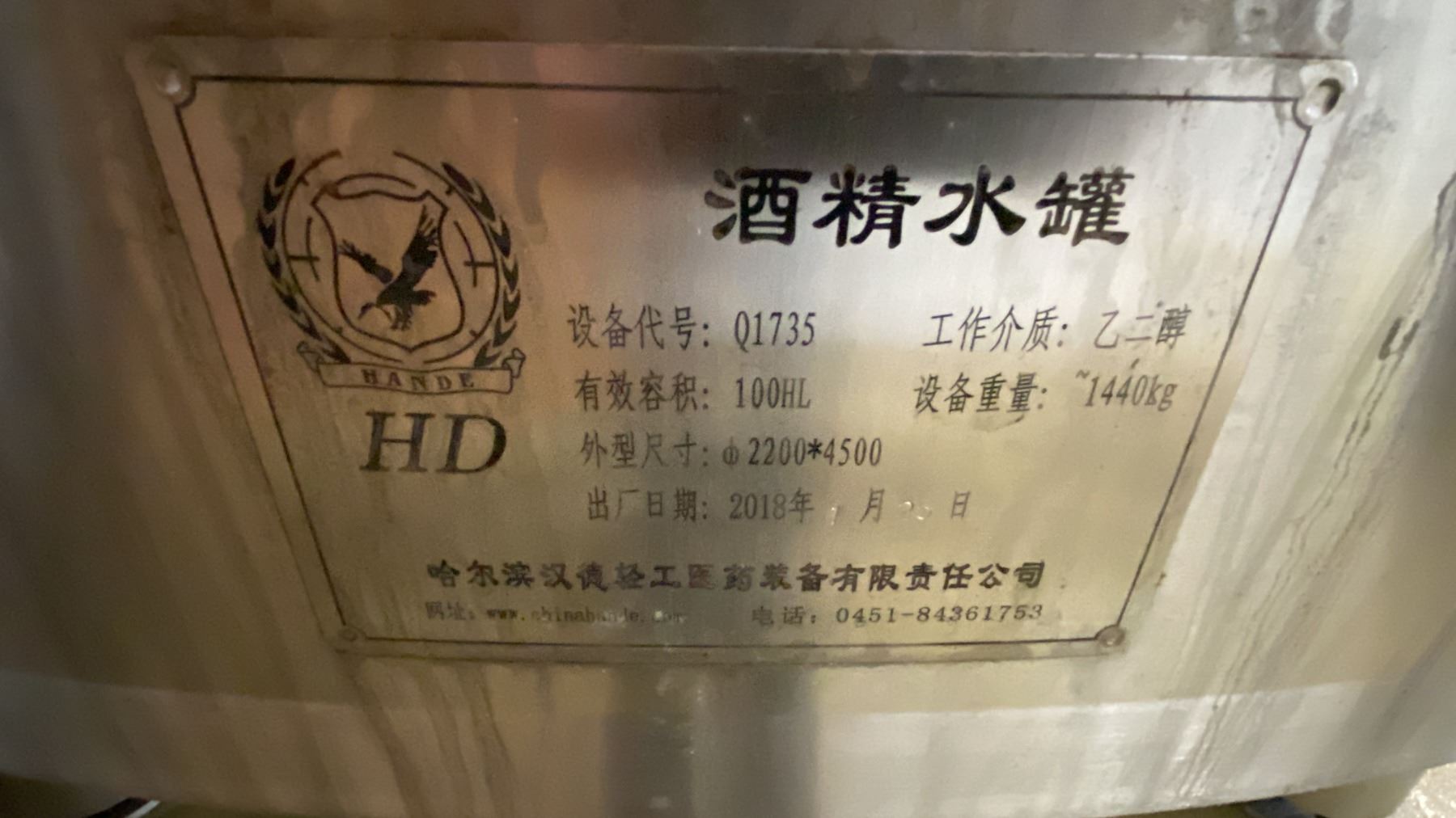 HANDE INSULATED STAINLESS STEEL 100HL ALCOHOL/GLYCOL WATER TANK *BUYER WILL REQUIRE ANY TOOLS/EQUIPMENT AND HELP NECESSARY FOR REMOVAL* *REQUIRES HIAB/CRANE FOR REMOVAL*