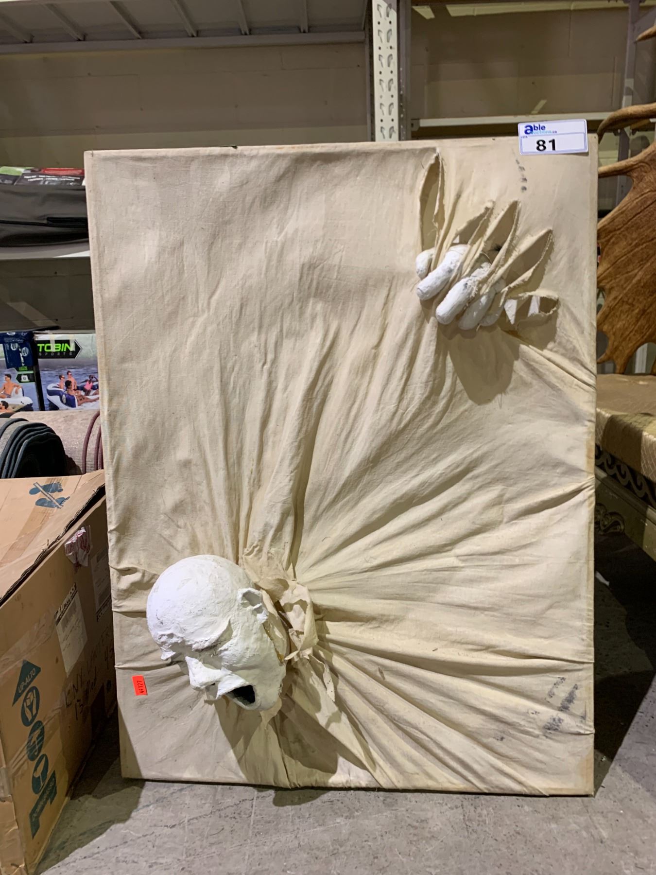HANGING WALL DECOR OF MAN ESCAPING WALL APPROX 31"X42"