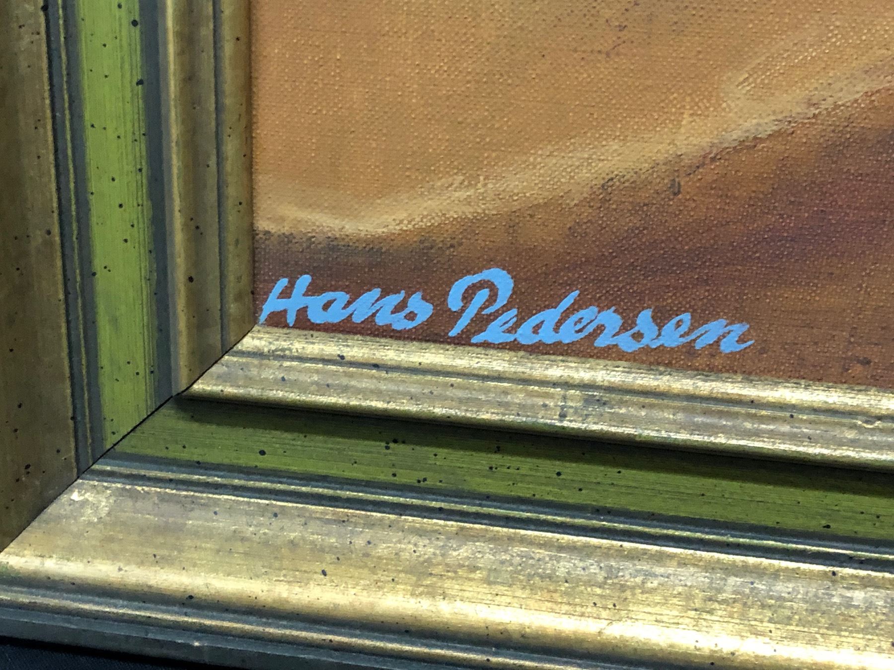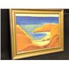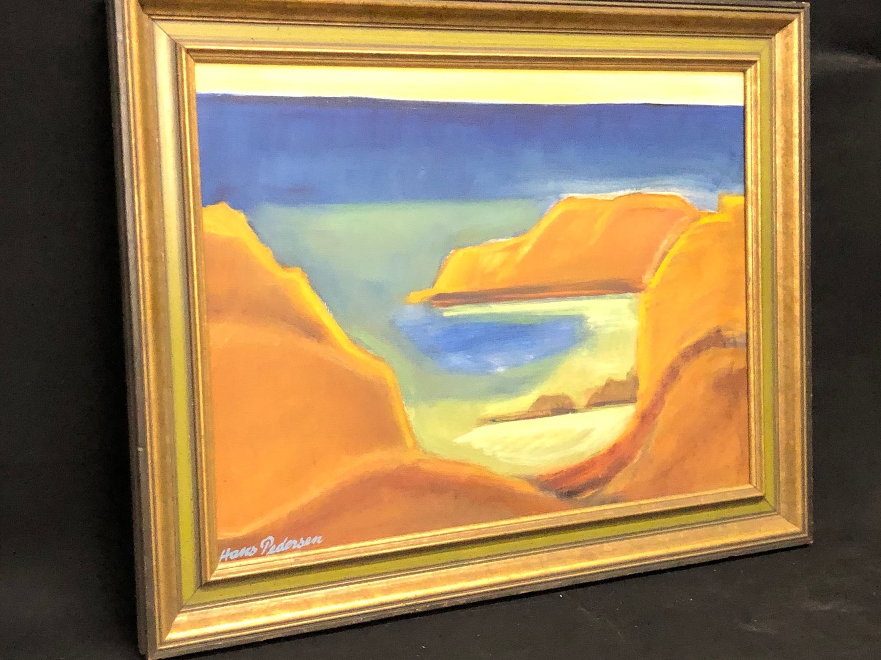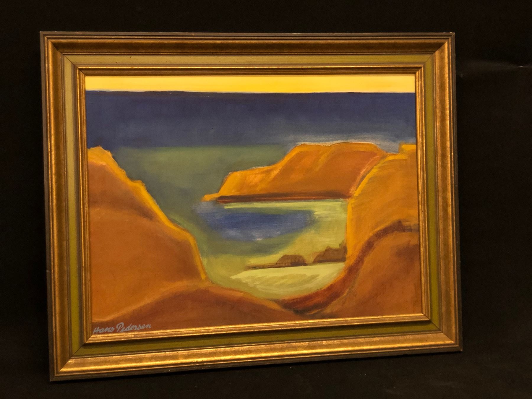 HANS PEDERSEN, FRAMED ORIGINAL CANVAS PAINTING, ABSTRACT OCEAN INLET, SIGNED LOWER LEFT, 23'' X