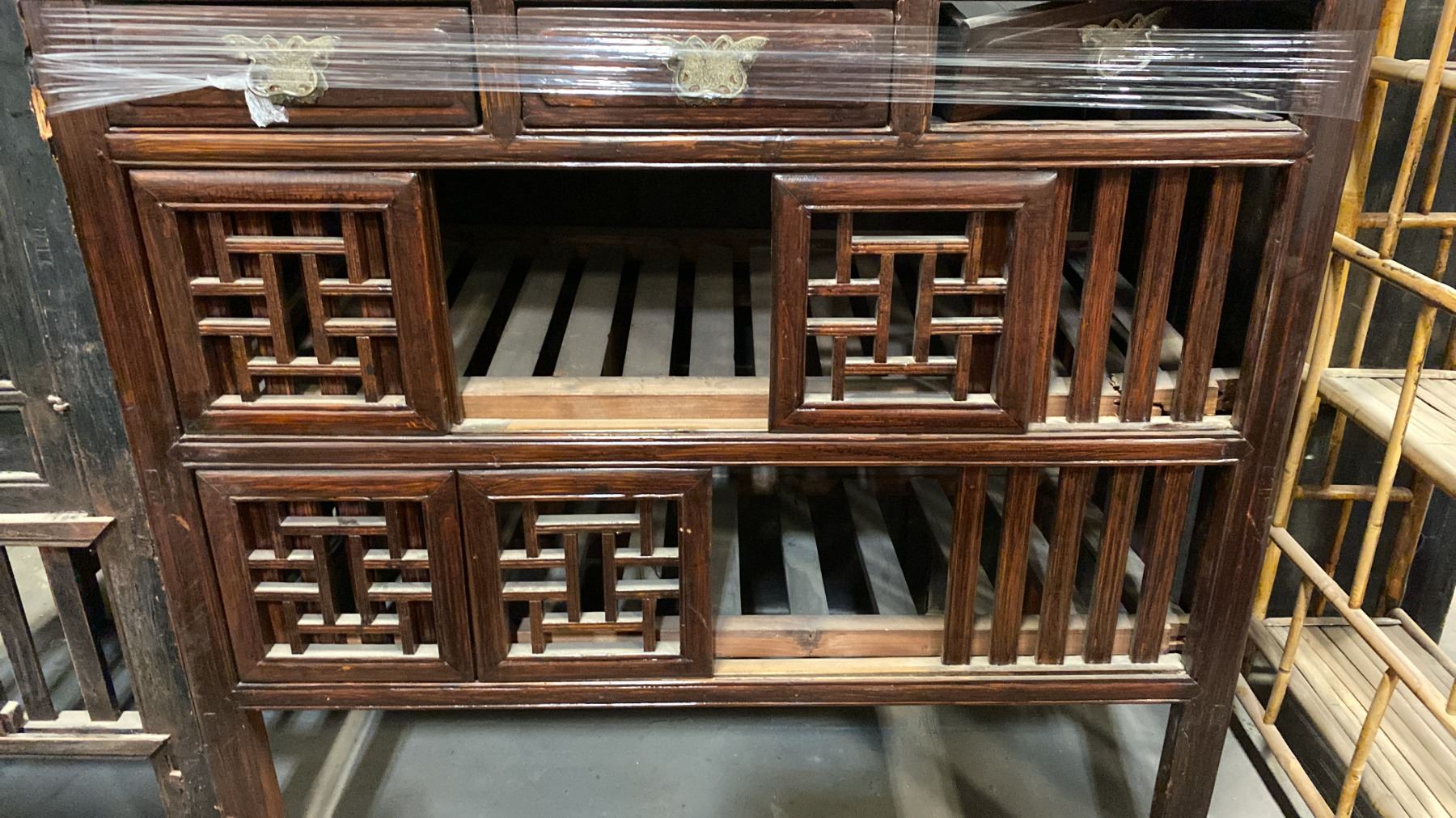 HARDWOOD ASIAN STORAGE CABINET *MAY NEED REPAIR*