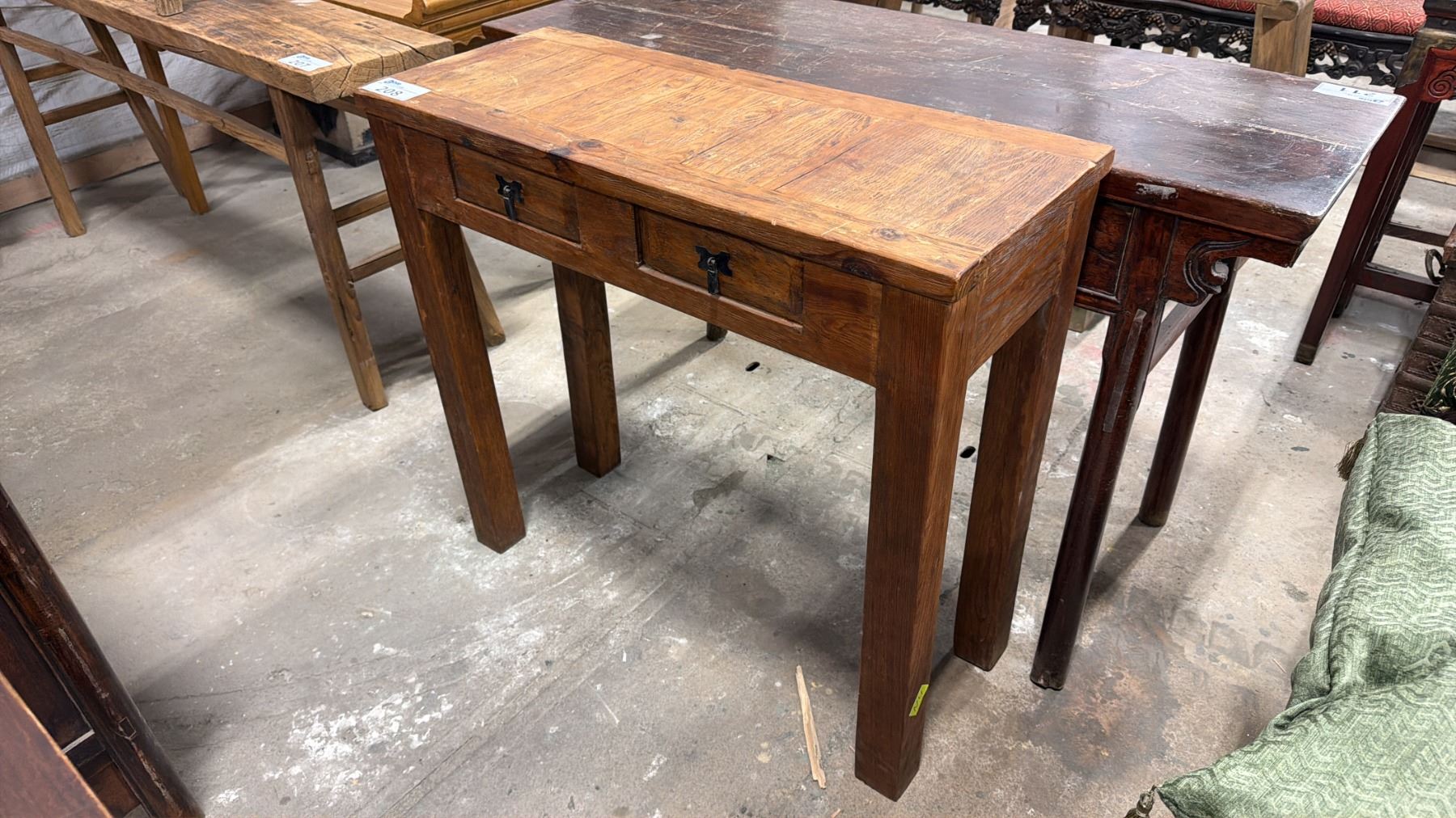 HARDWOOD CONSOLE TABLE WITH METAL ACCENTS