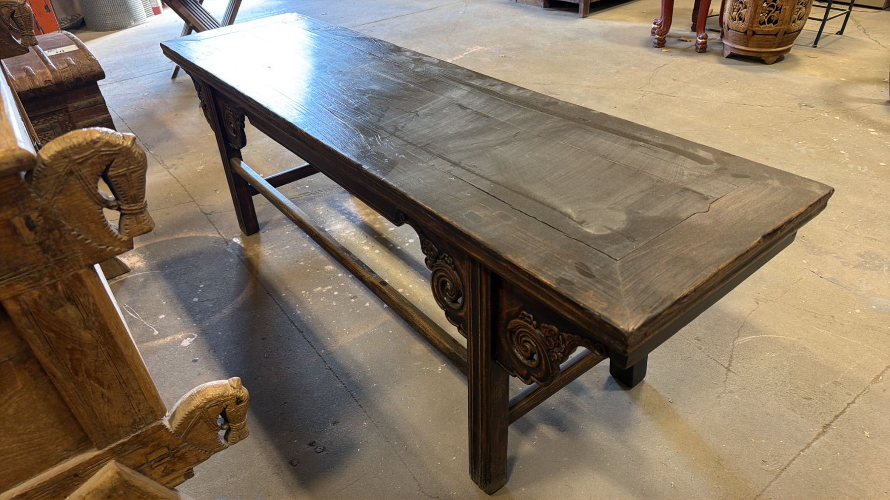 HARDWOOD STAINED DARK RUSTIC BENCH SEAT