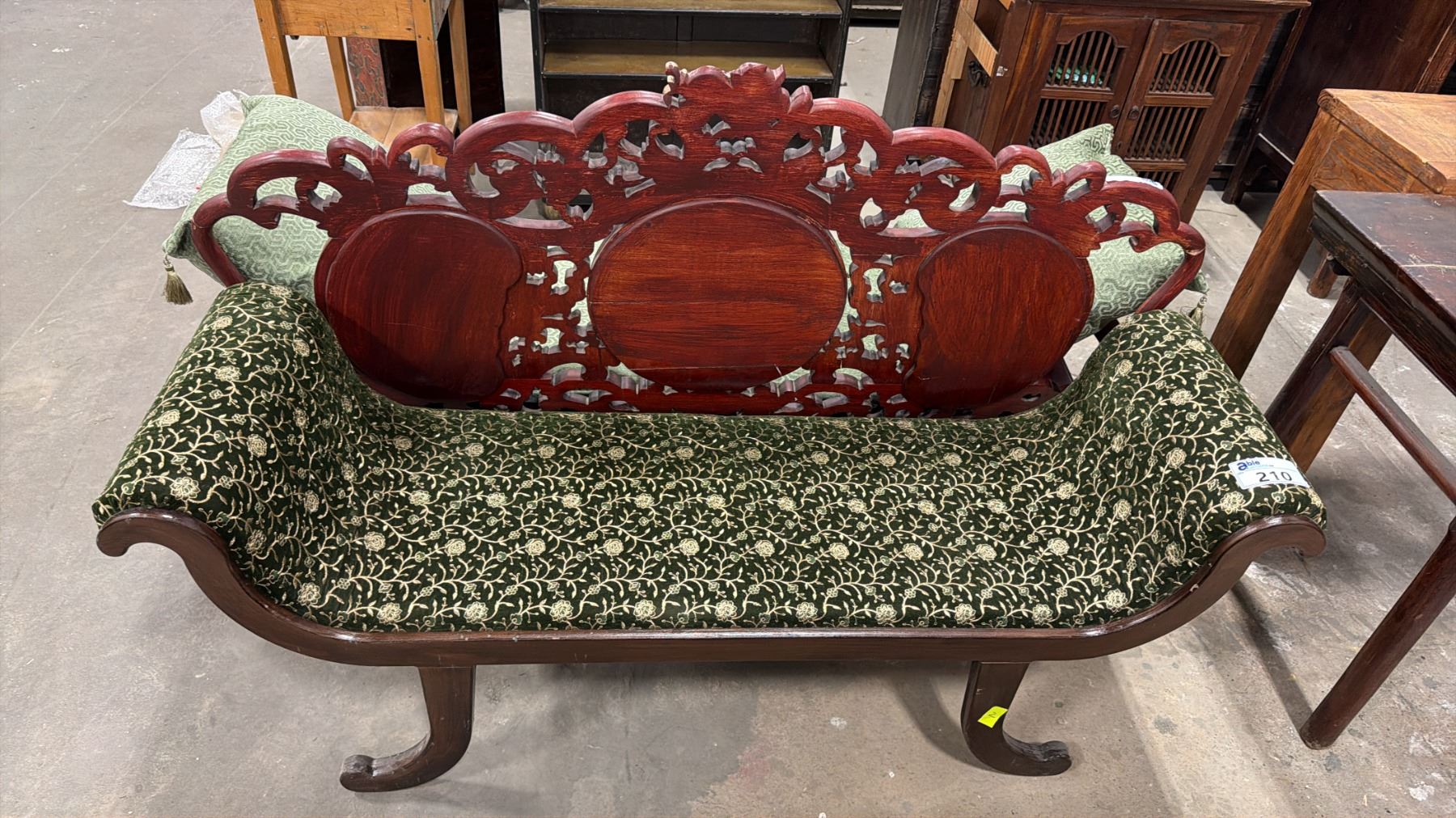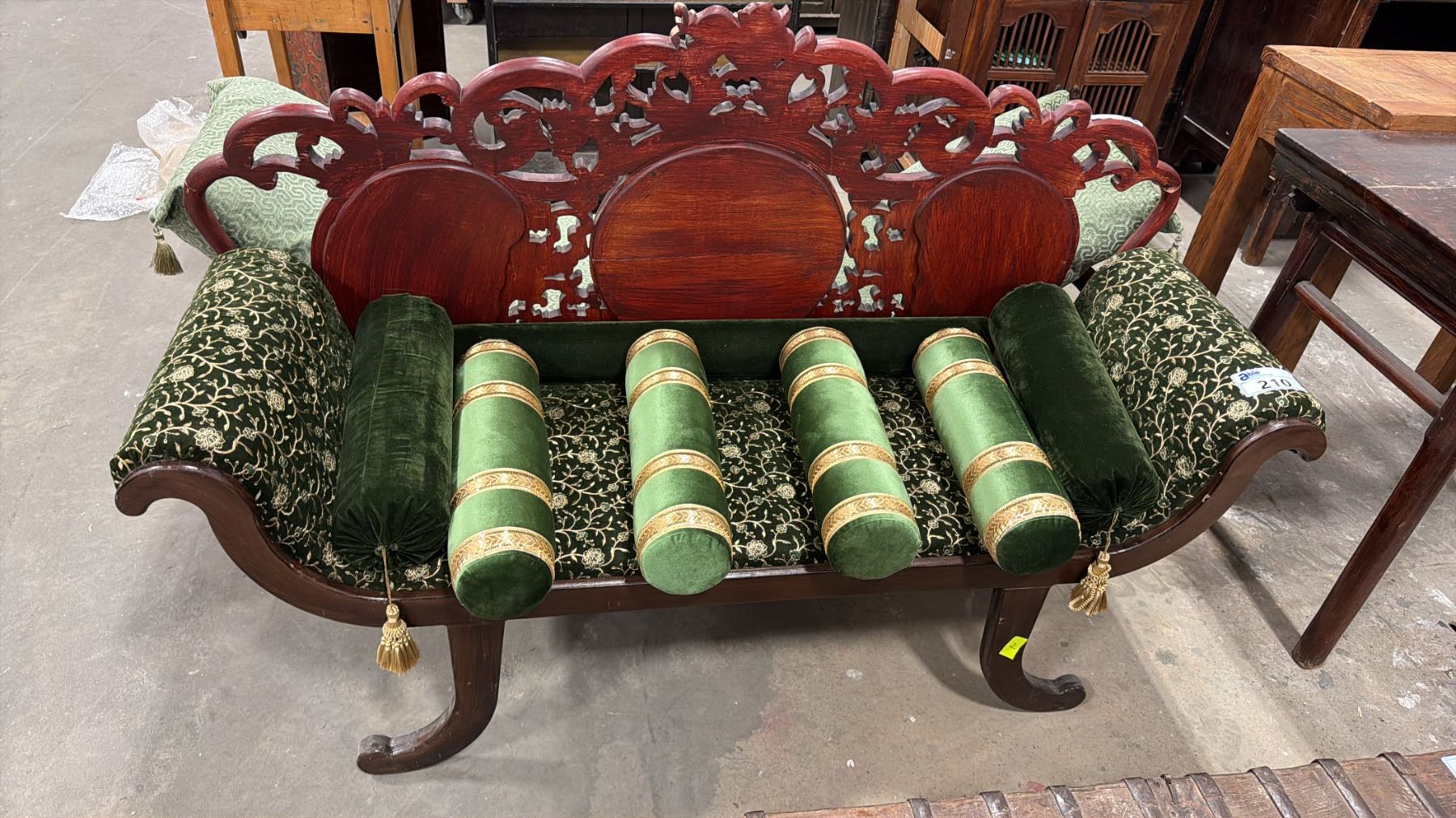 HARDWOOD UPHOLSTERED GREEN SLEIGH BENCH SEAT