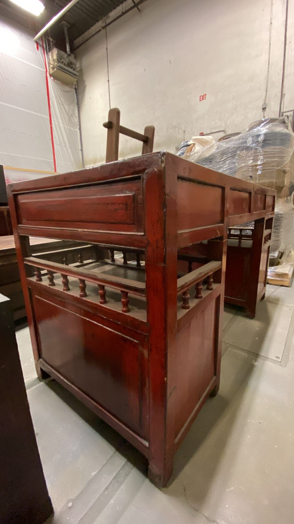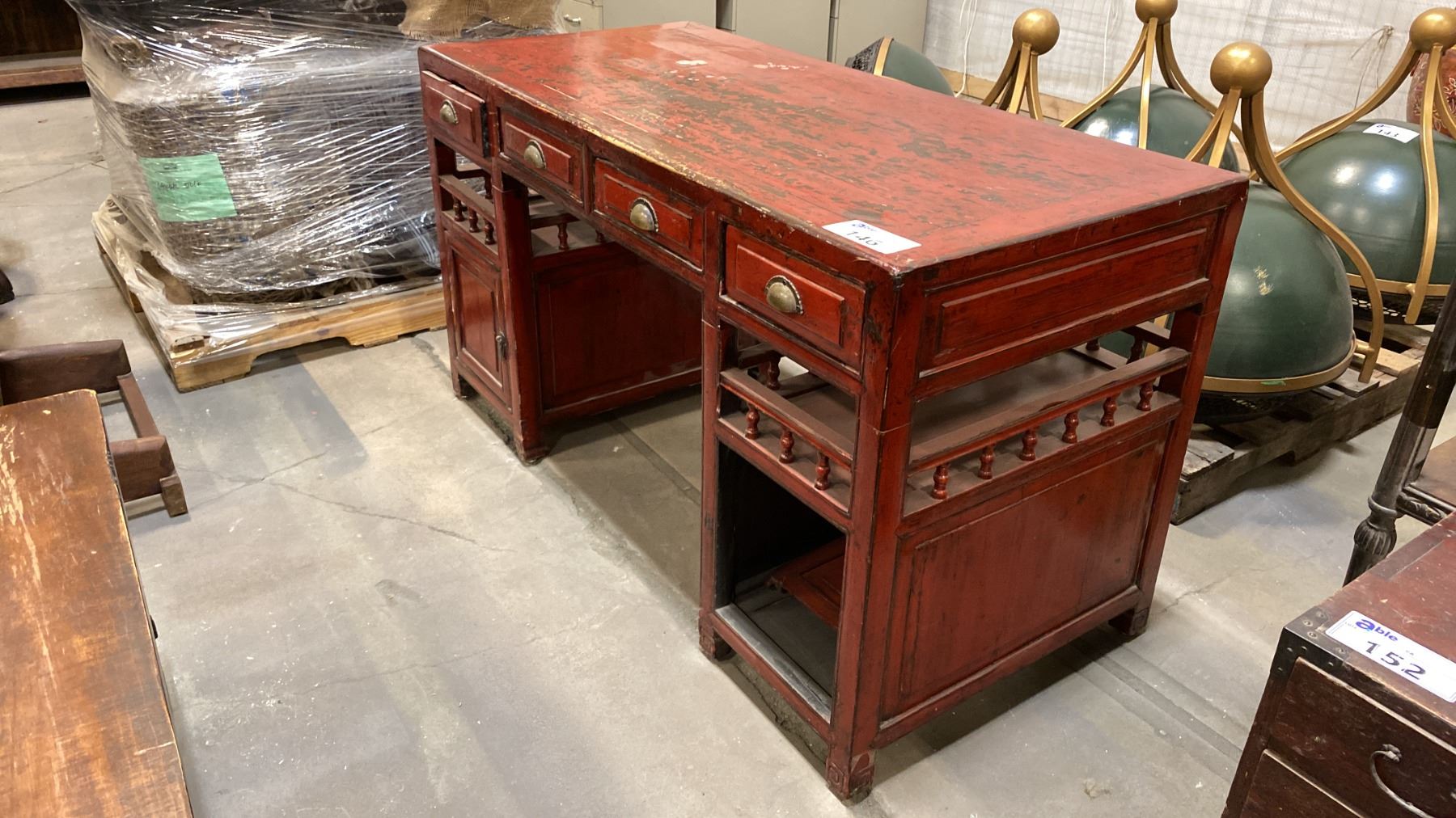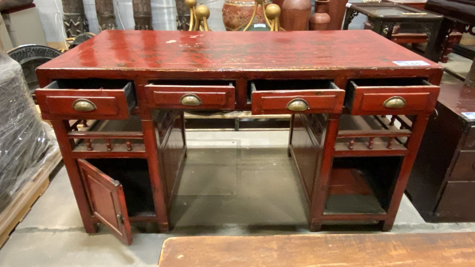 HARDWOOD WITH METAL ACCENTS ASIAN PAINTED RED RUSTIC DESK