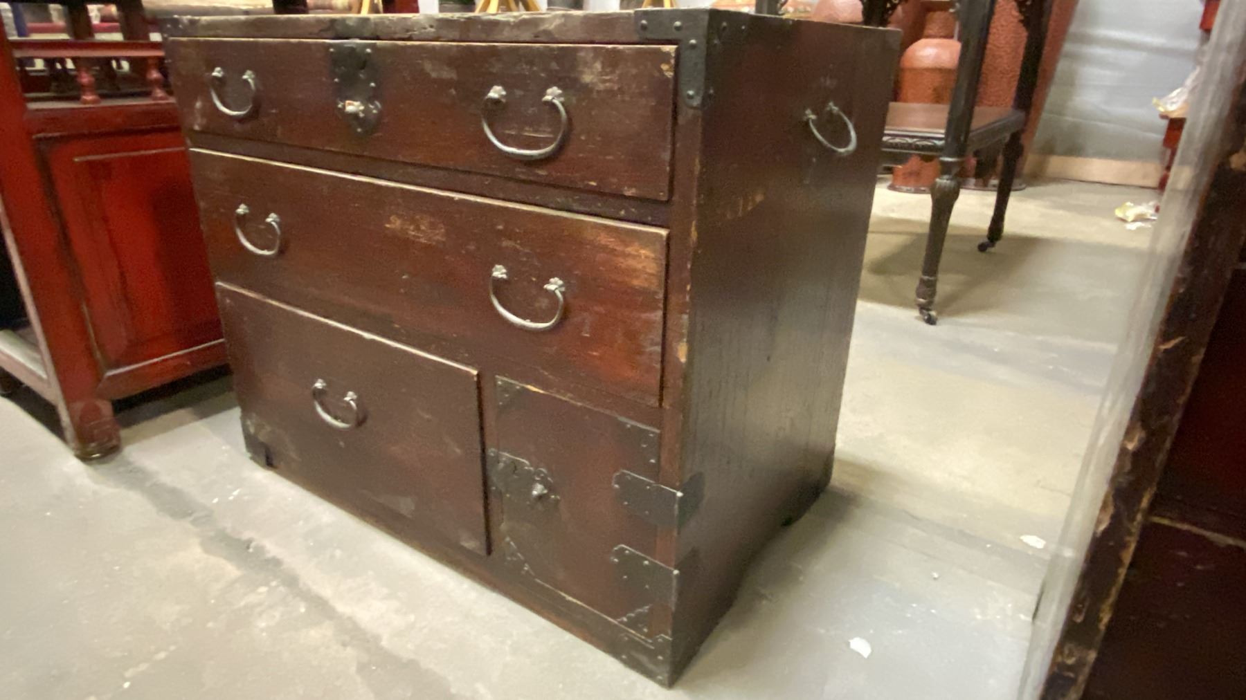 HARDWOOD WITH METAL ACCENTS RUSTIC SMALL 3 DRAWER STORAGE CABINET