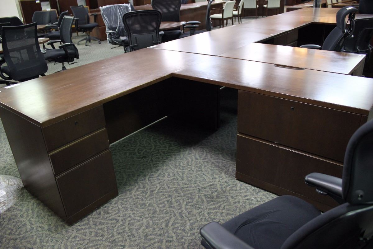 HAWORTH 6FT CHERRY L-SHAPE EXECUTIVE DESK