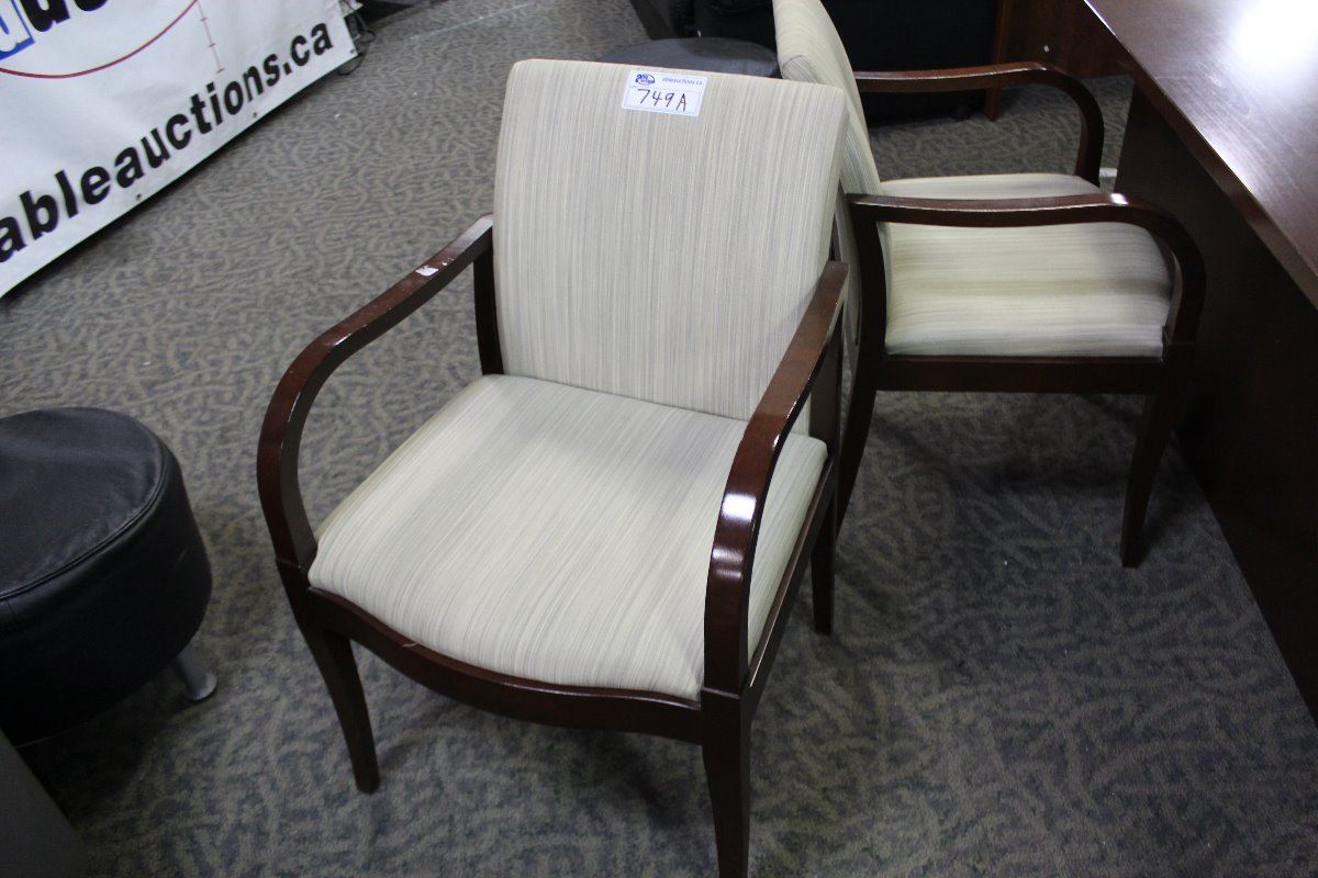 HAWORTH BEIGE MAHOGANY FRAME CLIENT CHAIR